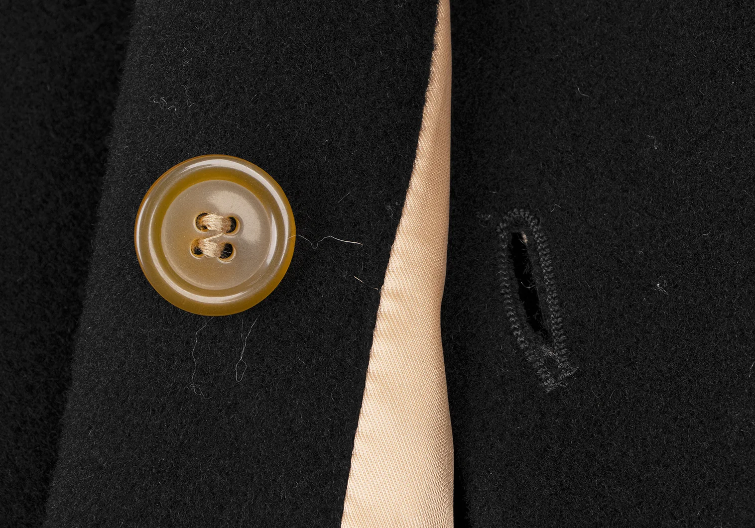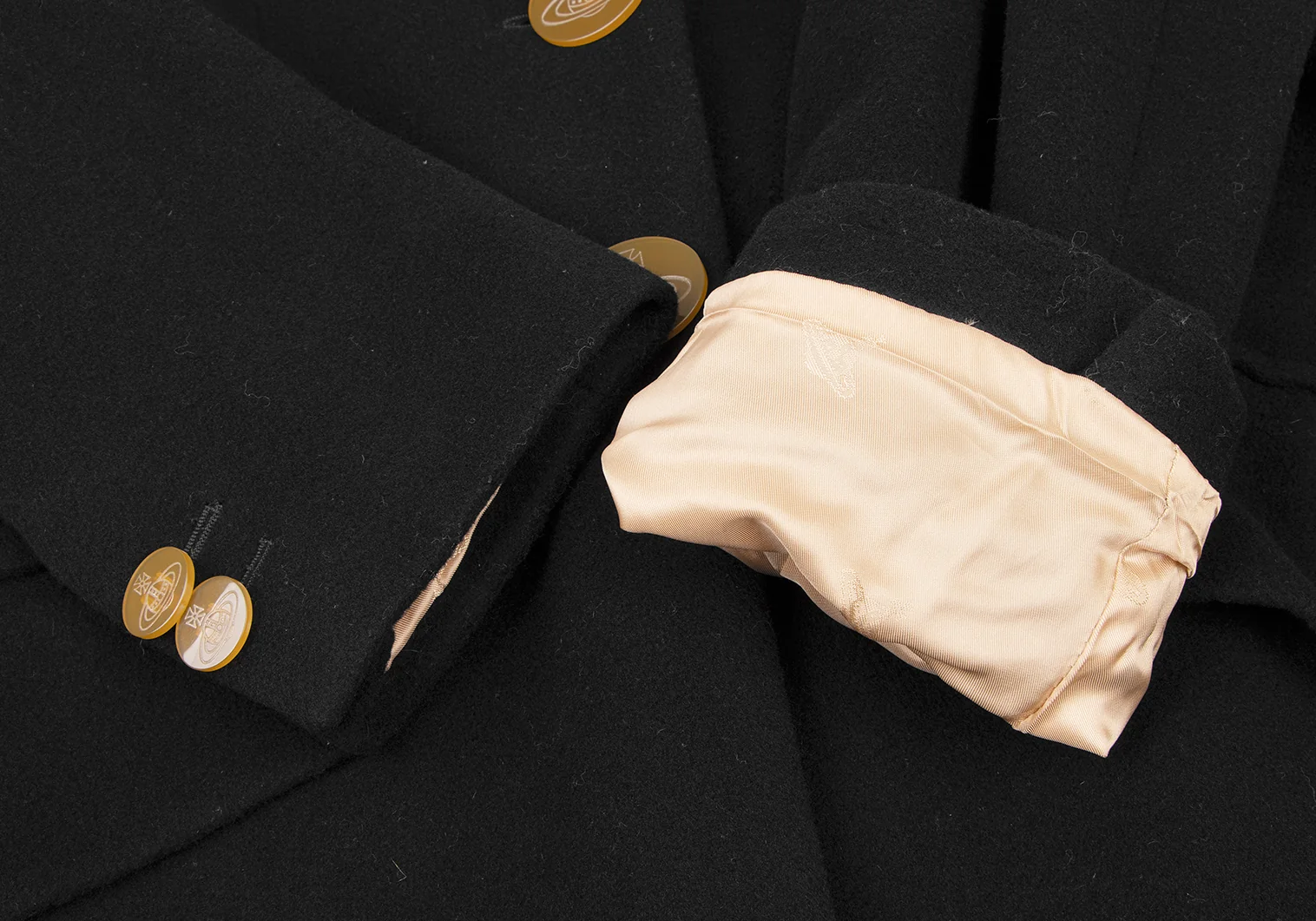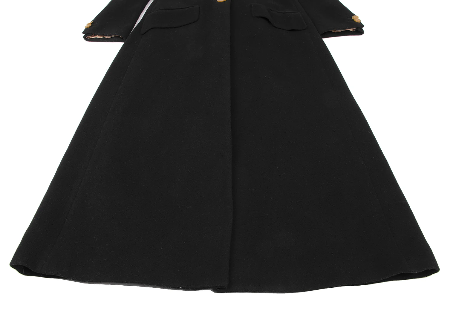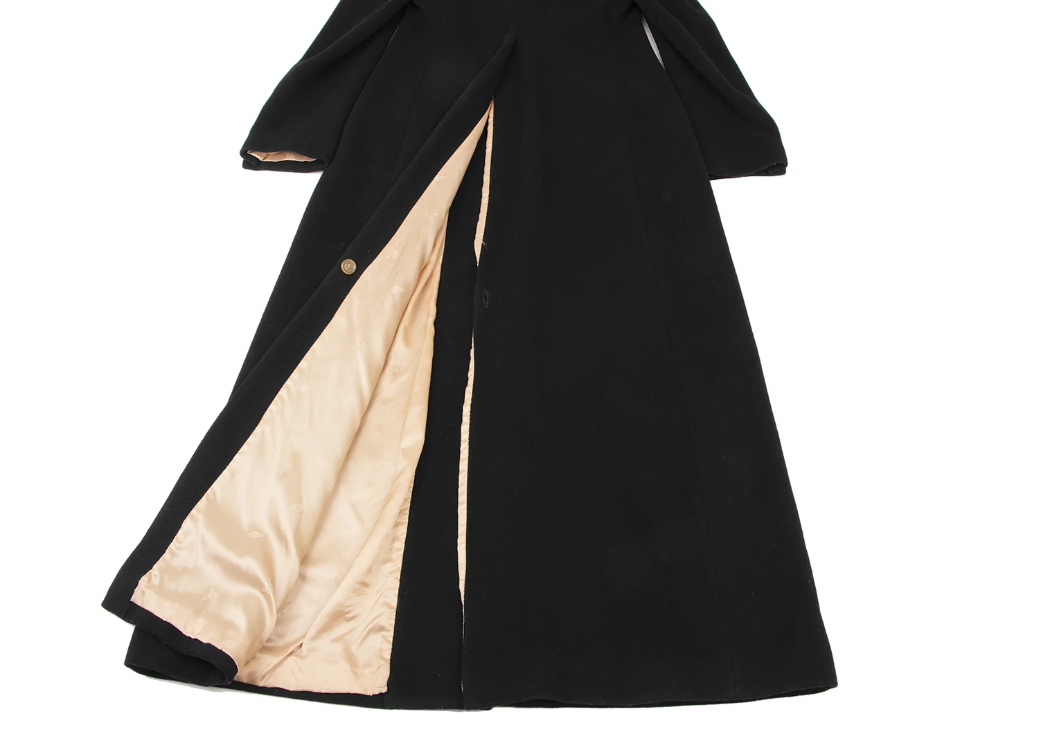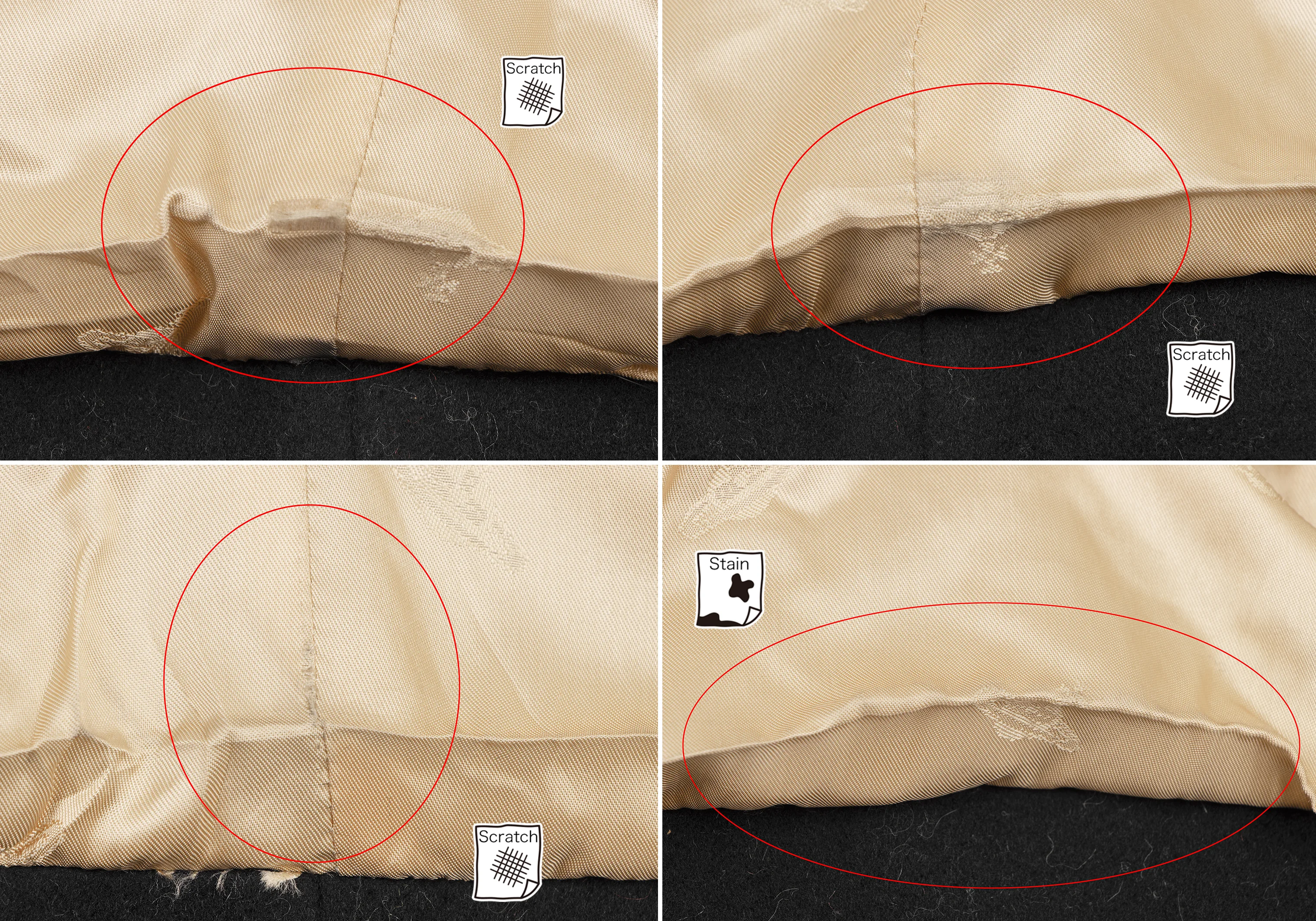 裾裏地に擦り切れ・薄汚れがあります(写真参照)。その他目立ったシミ、汚れ、ほつれ等なくいい状態です。クリーニング済み