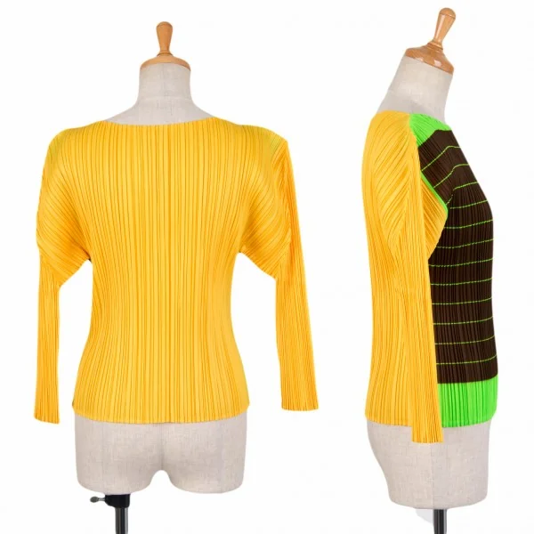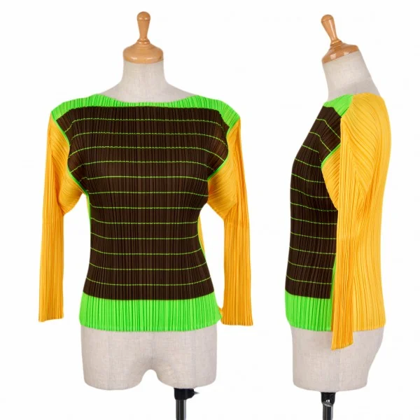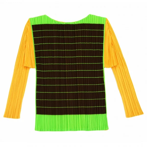 【SALE】プリーツプリーズPLEATS PLEASE カラフル七分袖カットソー 黄茶緑3