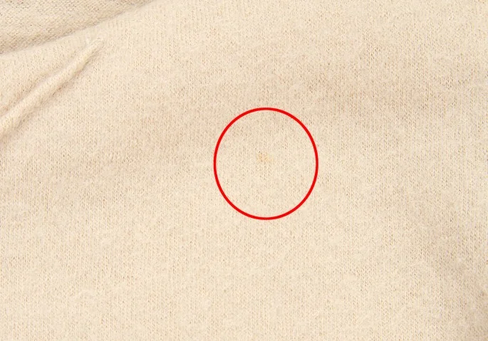 前身頃に点シミがあります(写真参照)その他目立ったシミ、汚れ、ほつれ等なくいい状態です。クリーニング済み