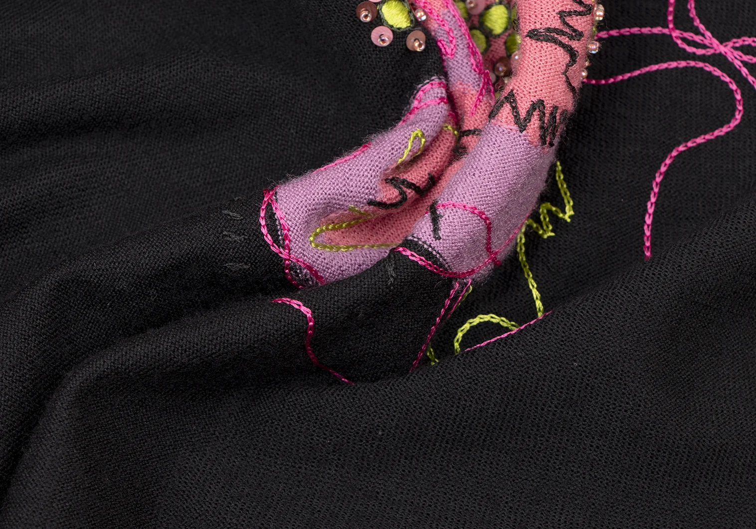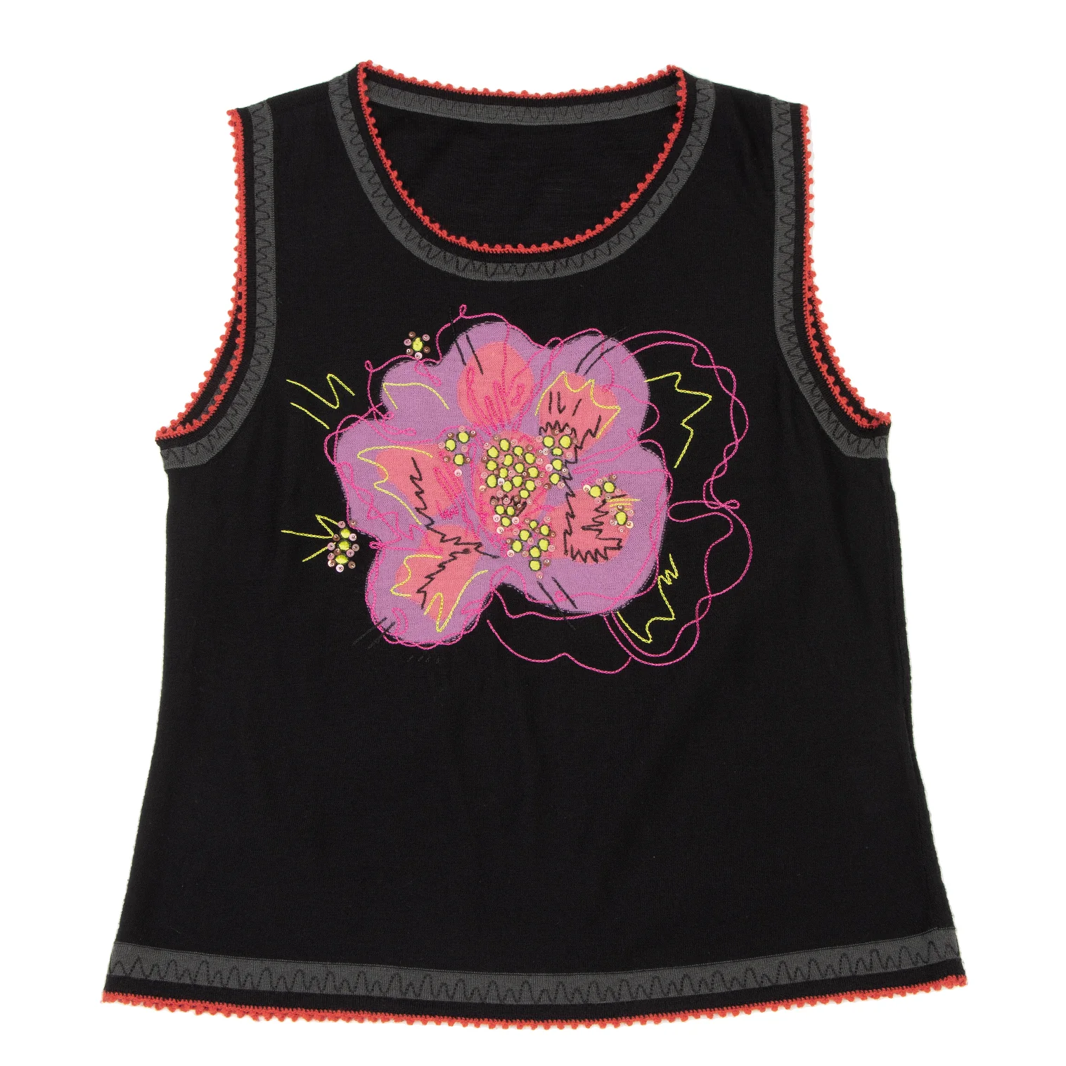 ヒロココシノHIROKO KOSHINO フラワーエンブロイダリーニットタンクトップ 黒赤ピンク40