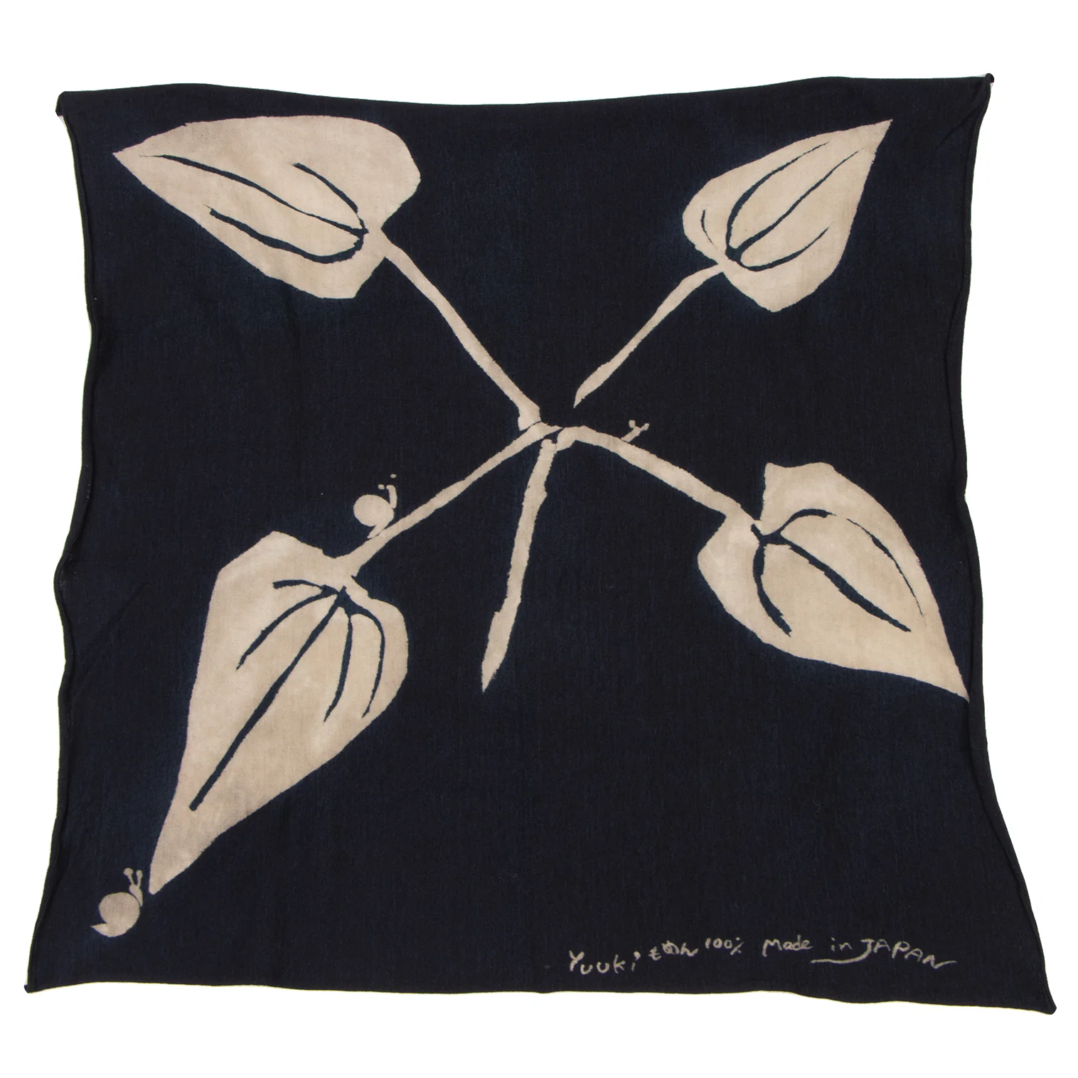 45rpm 45R 藍染リーフ柄天竺ハンカチ 紺