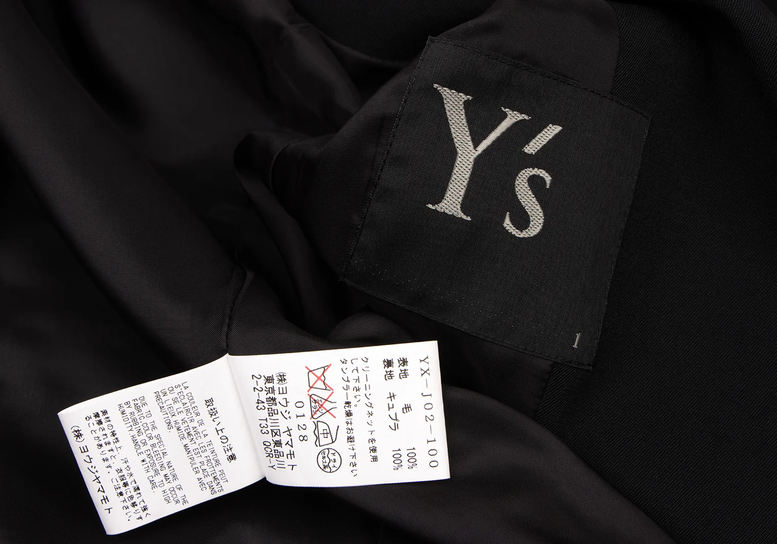 ワイズY's ウールギャバアシンメトリーダブルボタンジャケット 黒1