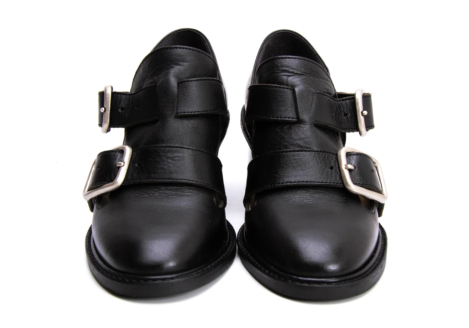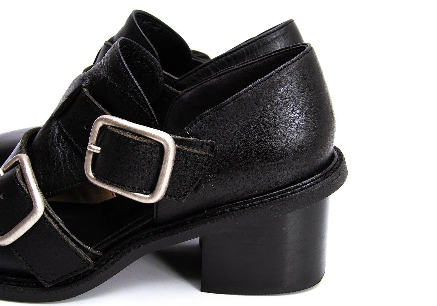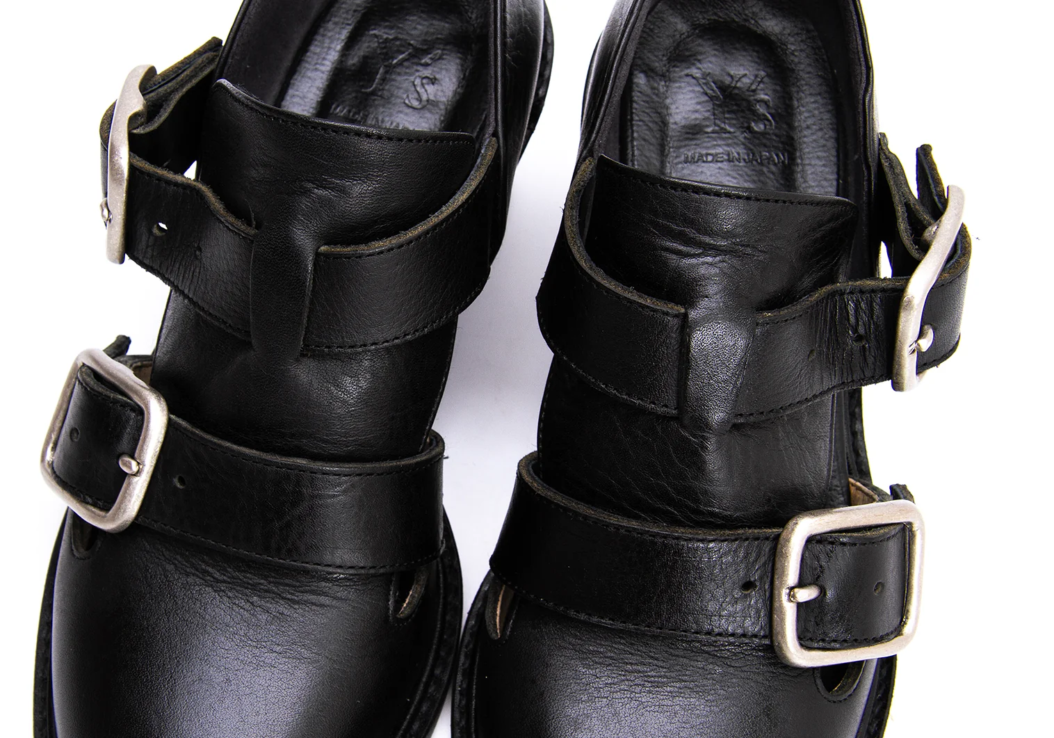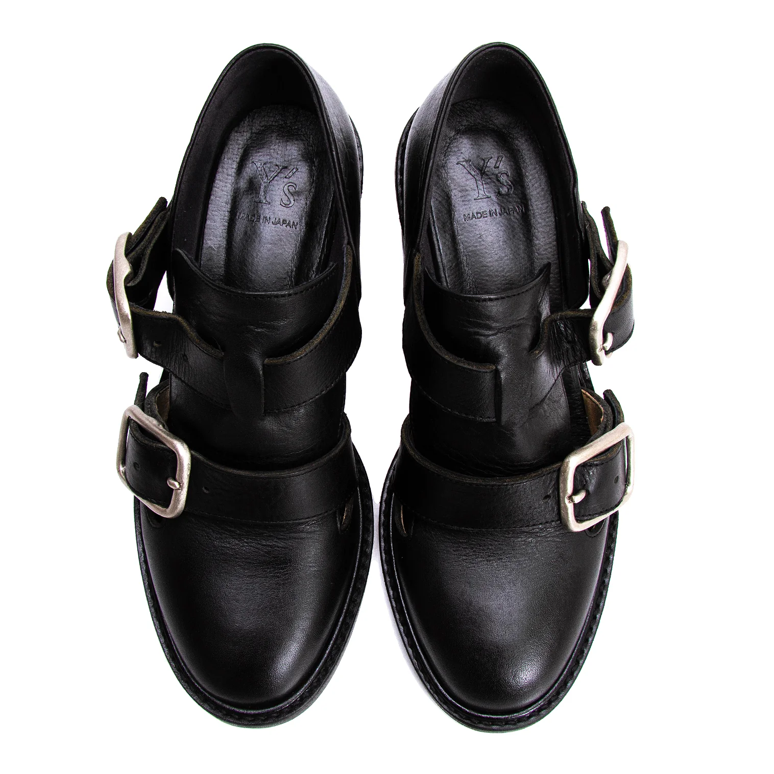 ワイズY's ダブルベルトレザーヒールシューズ 黒4(24.5位)