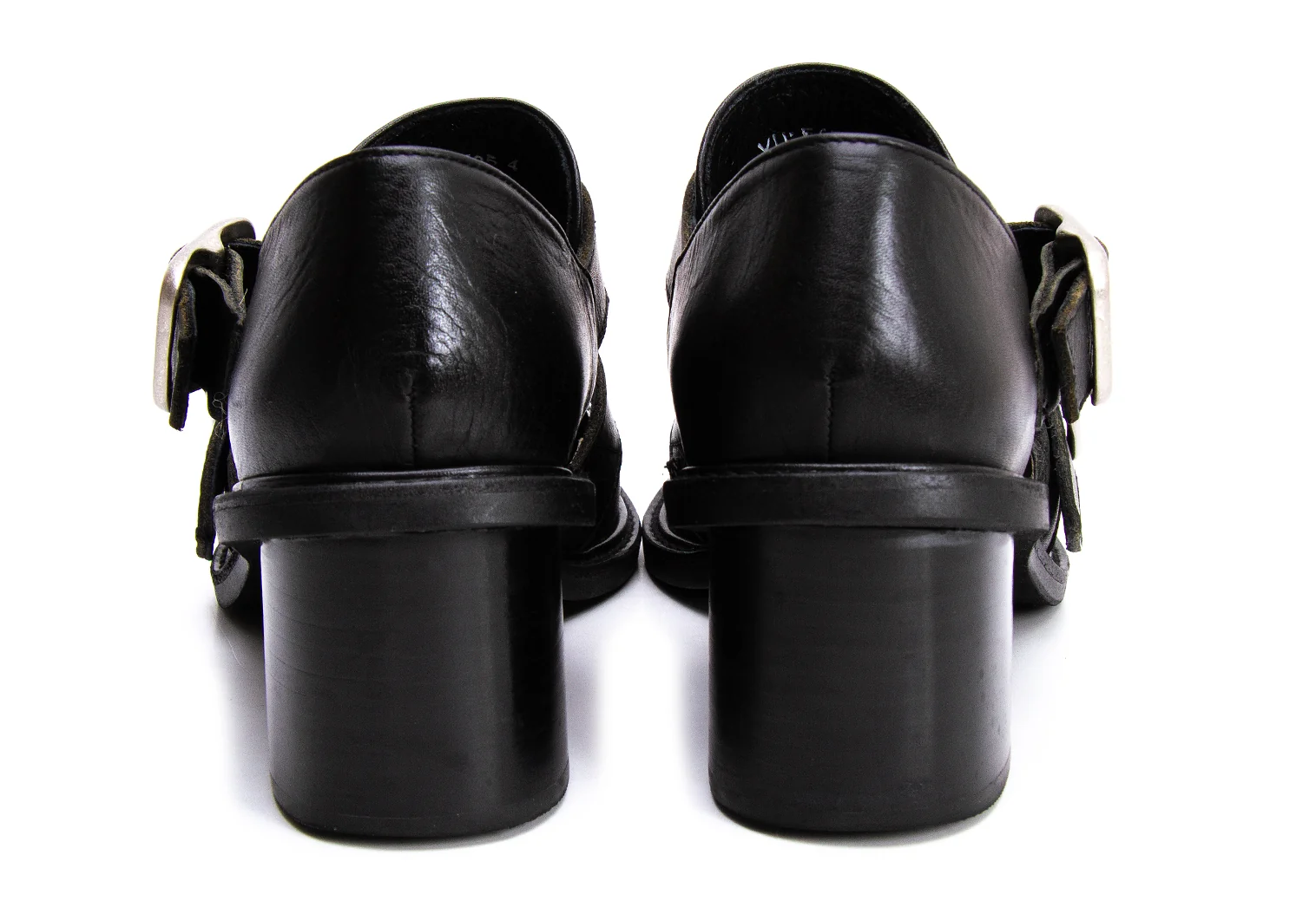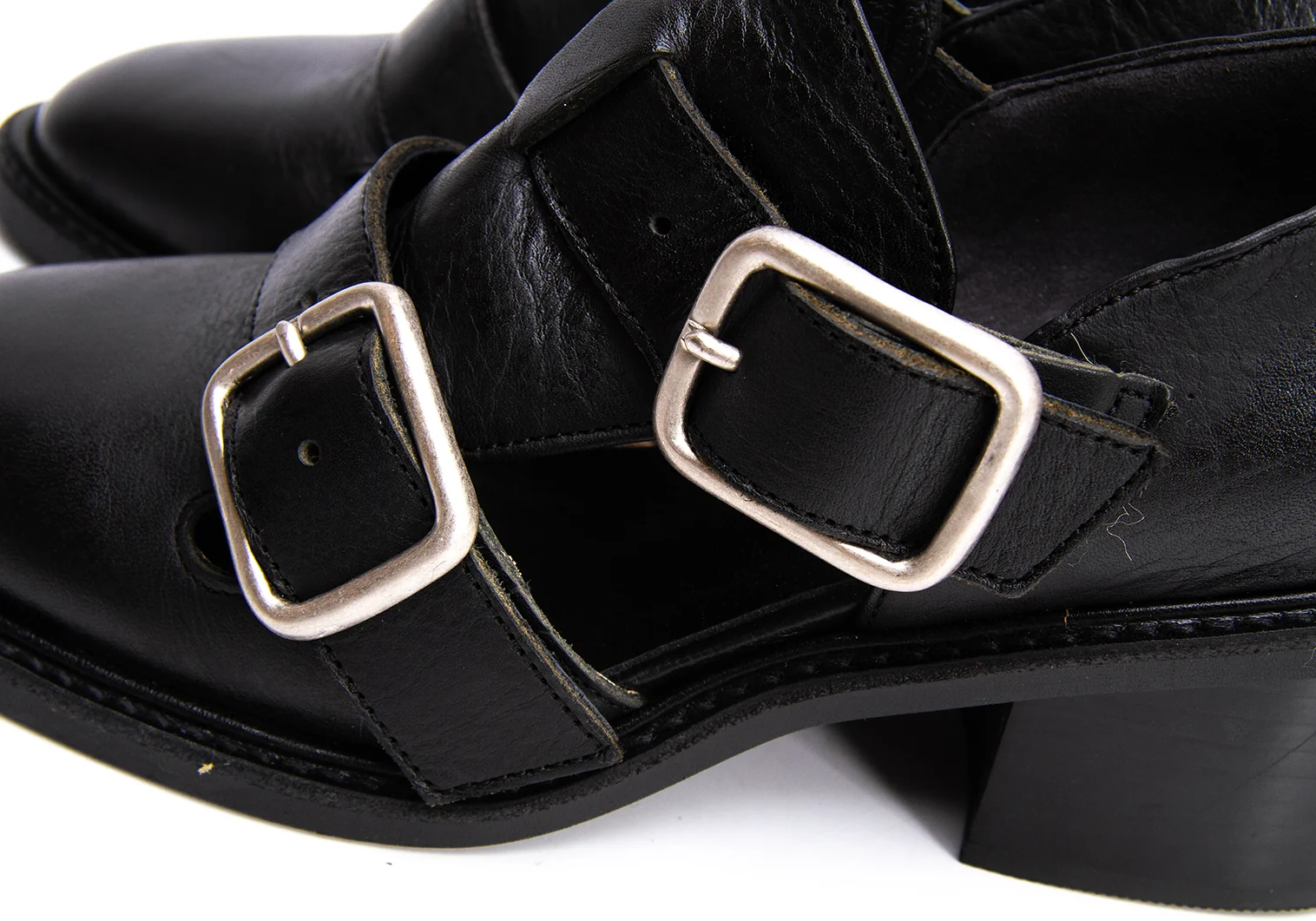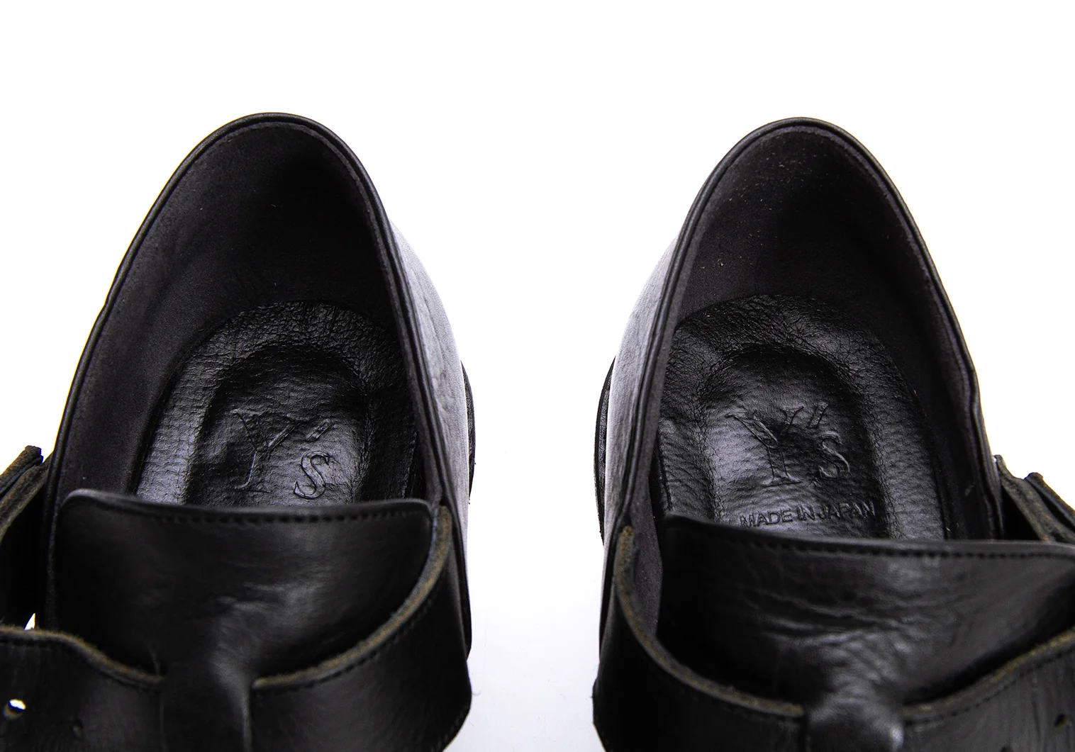 ワイズY's ダブルベルトレザーヒールシューズ 黒4(24.5位)
