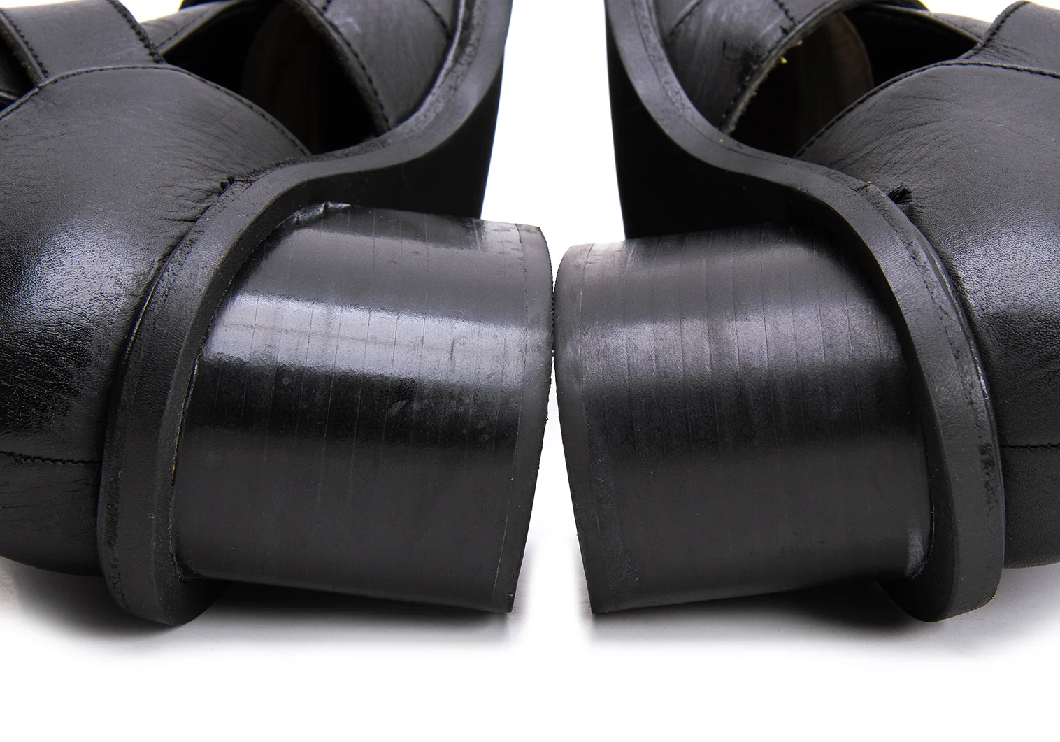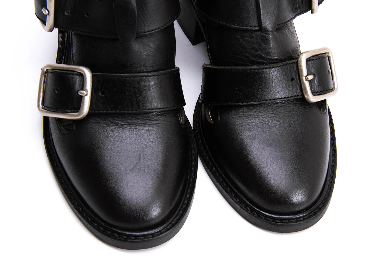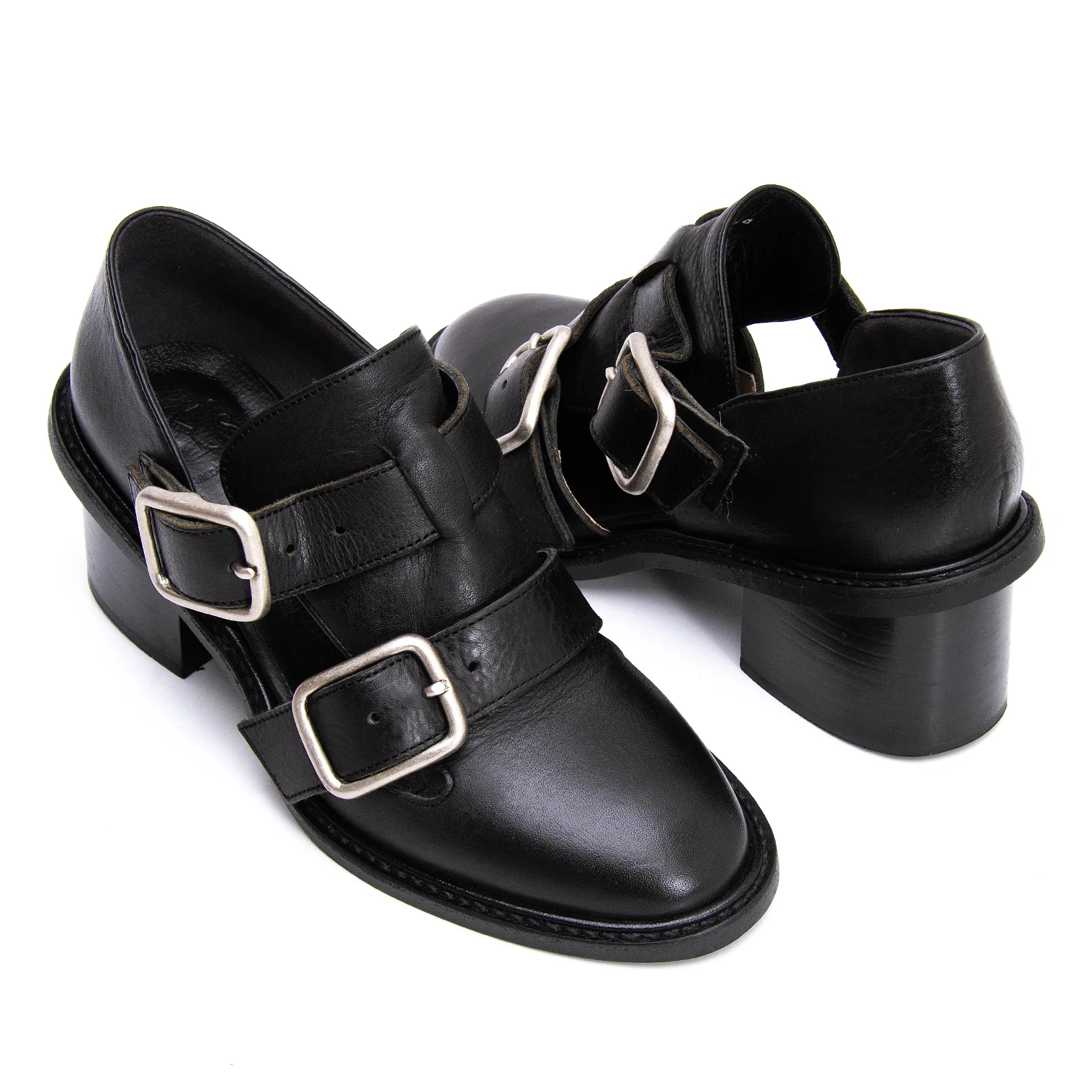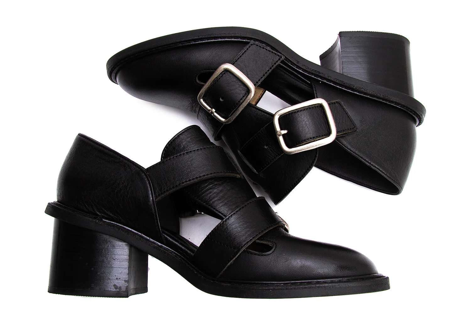 ワイズY's ダブルベルトレザーヒールシューズ 黒4(24.5位)