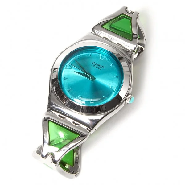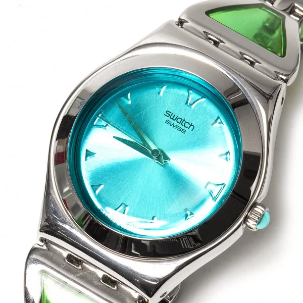 スウォッチ アイロニー swatch IRONY YLS1249 青緑シルバーベルト18〜20cm