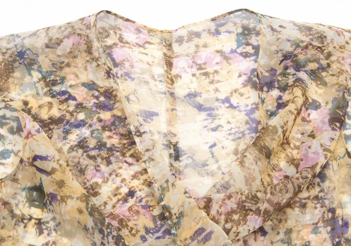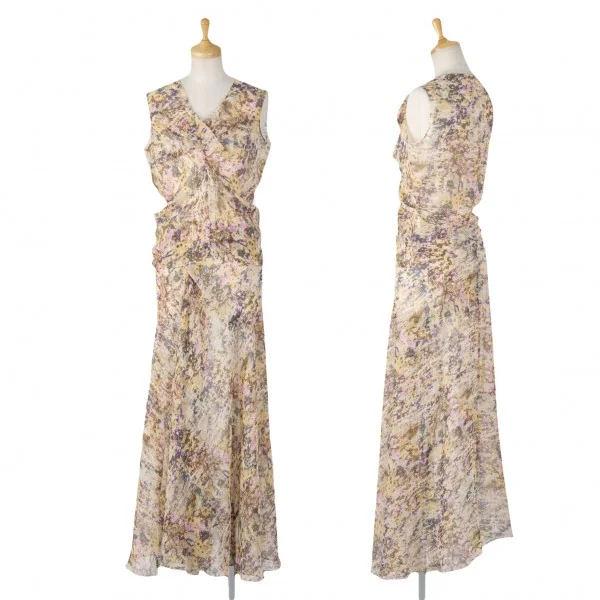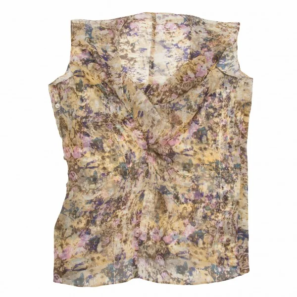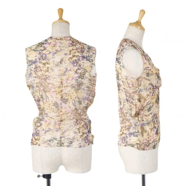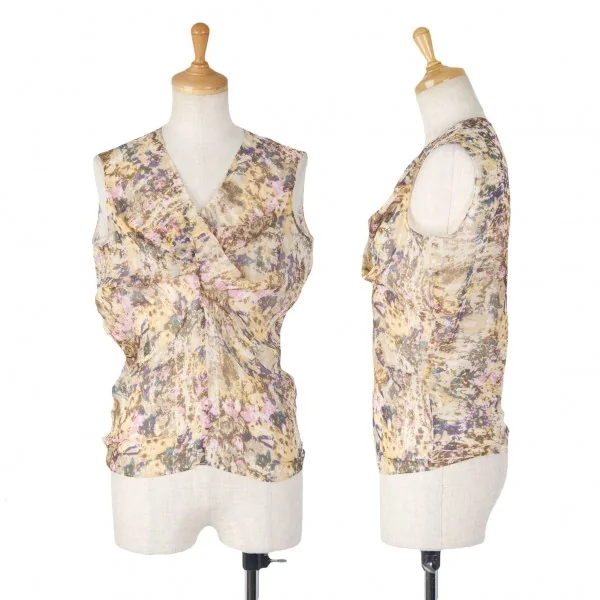イッセイミヤケISSEY MIYAKE シフォンプリントノースリーブブラウス ベージュ2