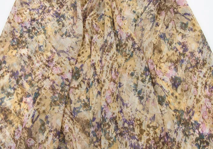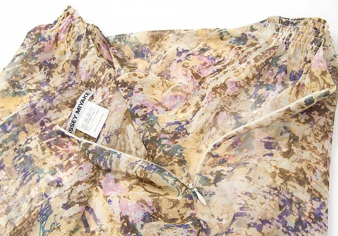 【SALE】イッセイミヤケISSEY MIYAKE シフォンプリントフレアースカート ベージュ2
