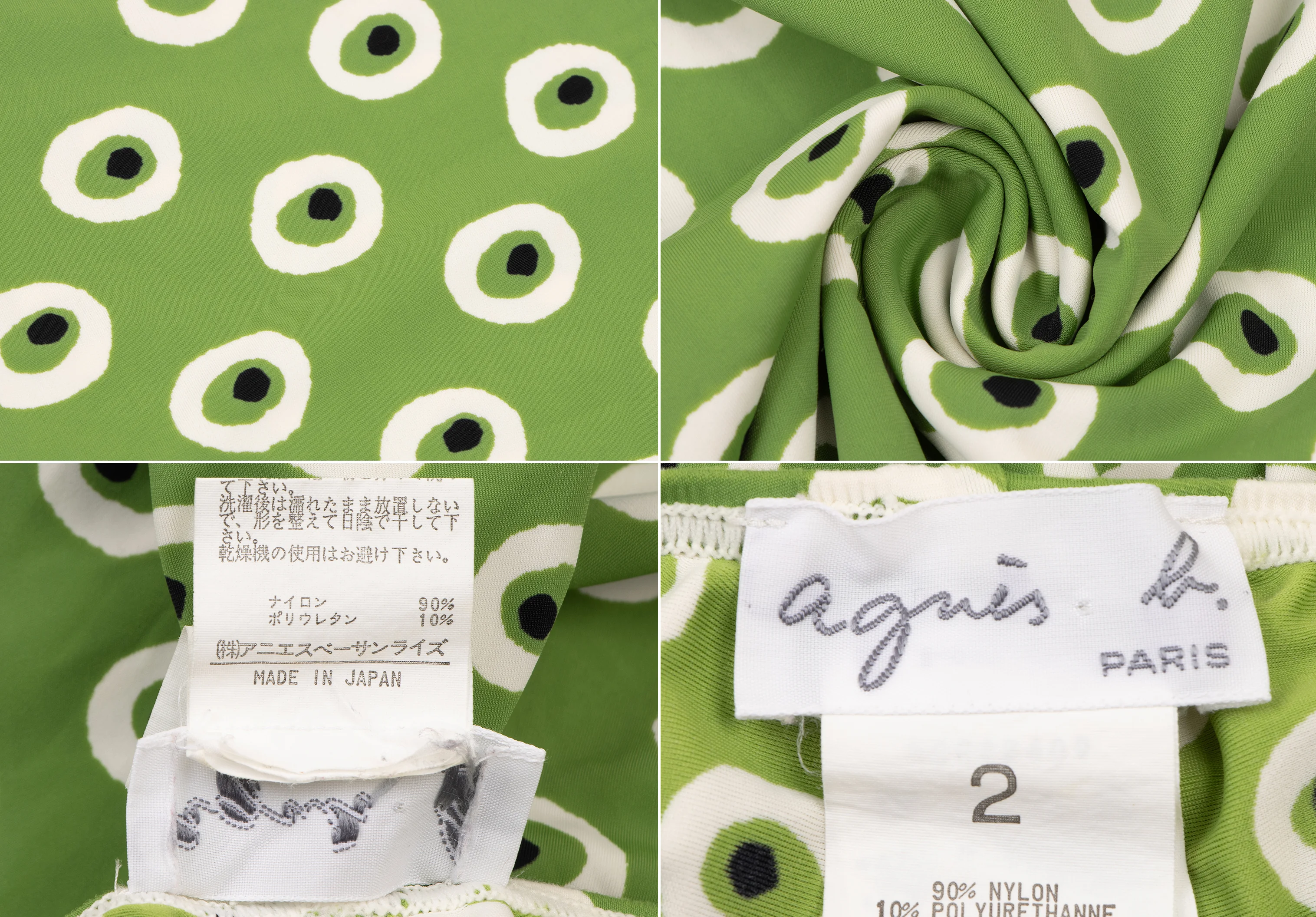 アニエスベーagnes b. ナイロンストレッチ総柄プリントセットアップ 緑白黒2