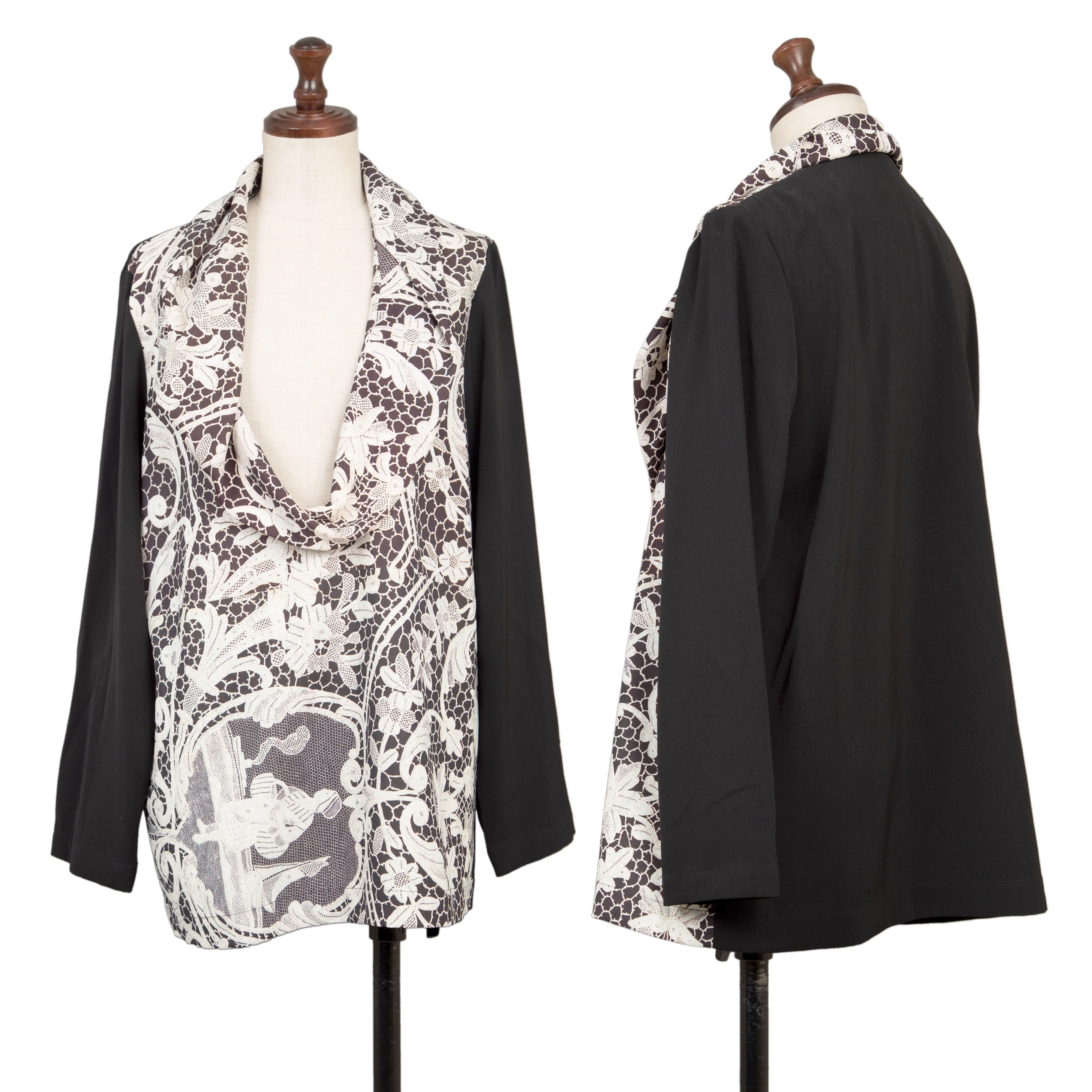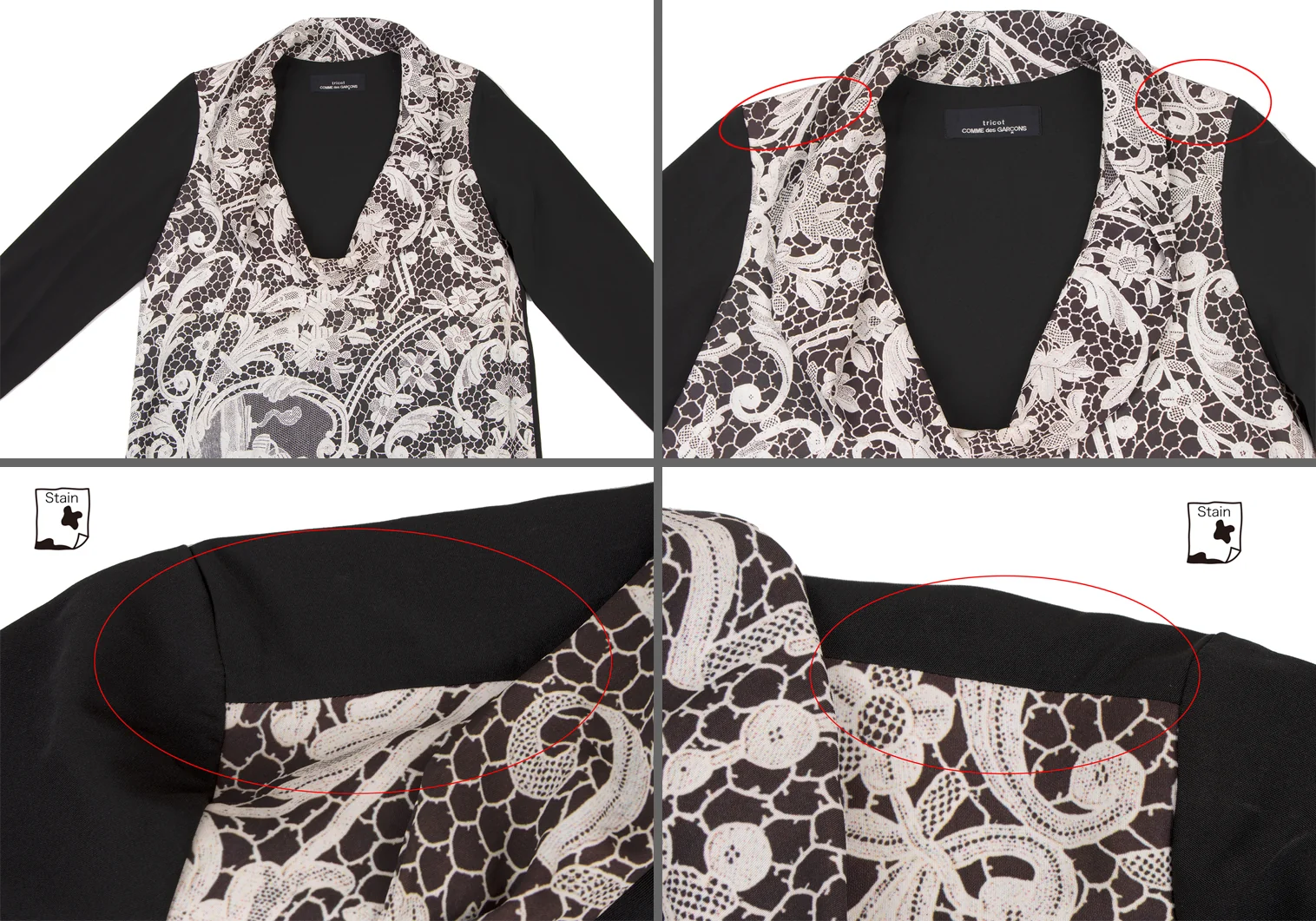トリココムデギャルソンtricot COMME des GARCONS フロントレースプリント切替セットアップ 黒白M位