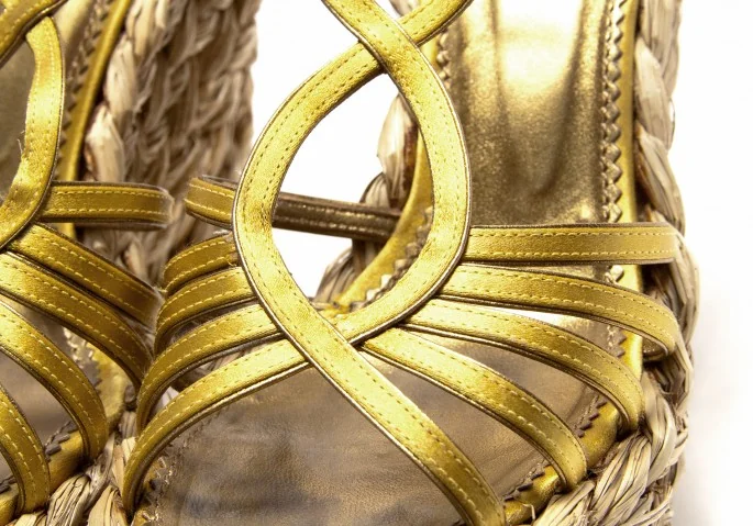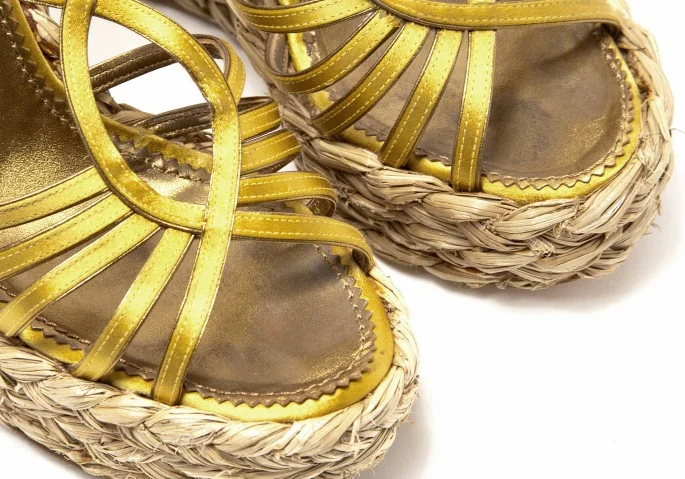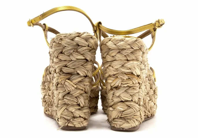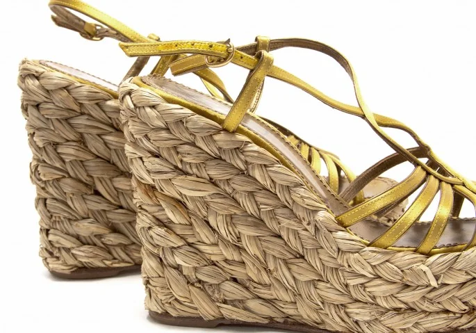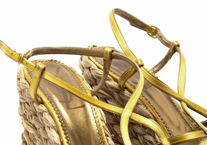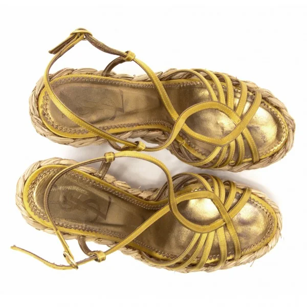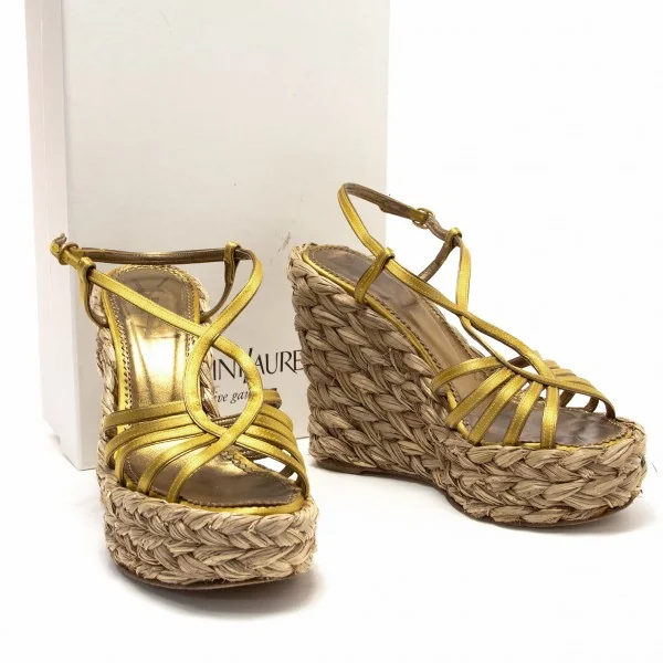 【SALE】イヴサンローラン リヴゴーシュYves Saint Laurent rive gauche Loulou 85 ウエッジサンダル ゴールド37(23.5cm位)