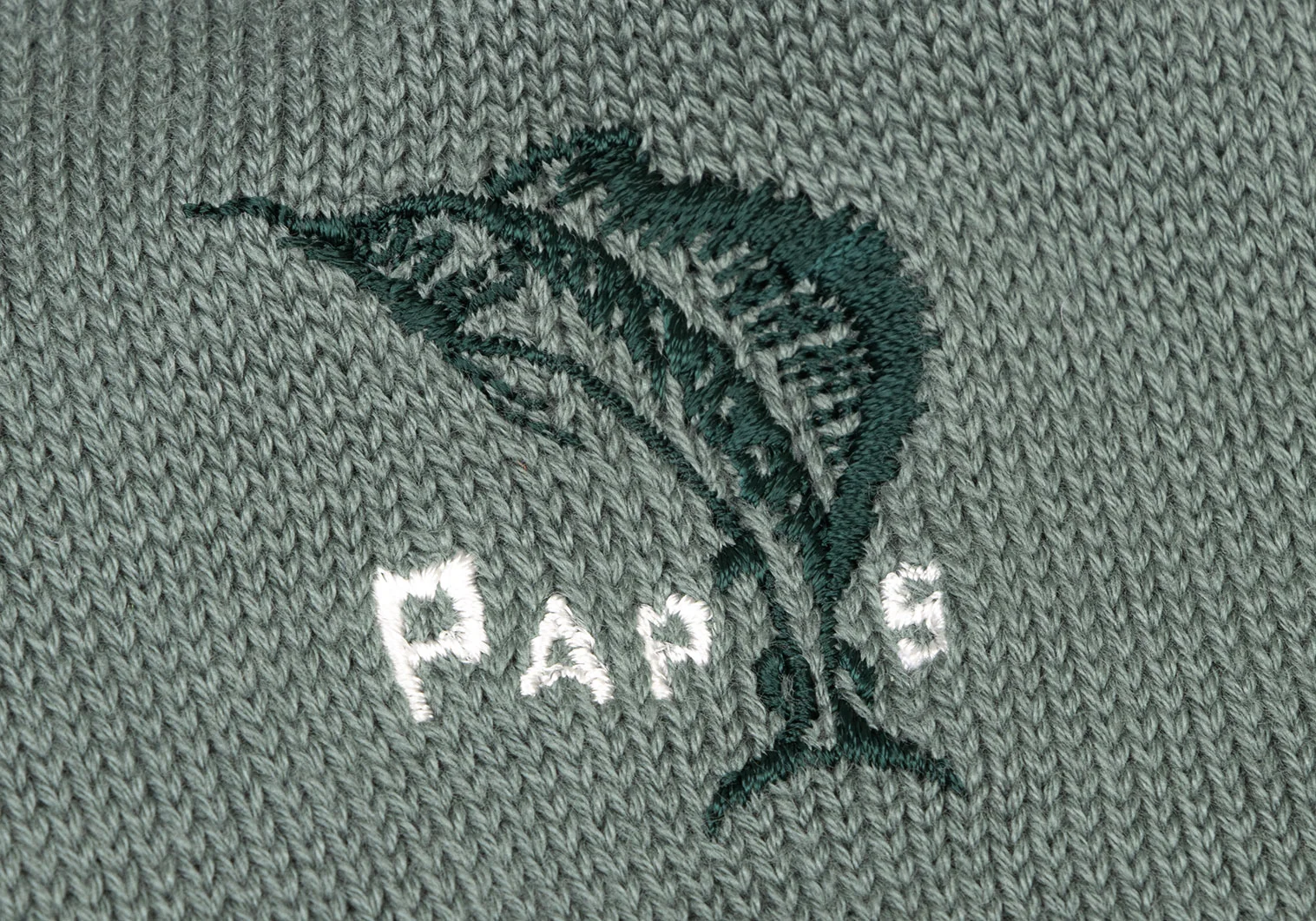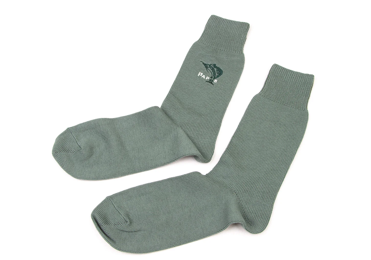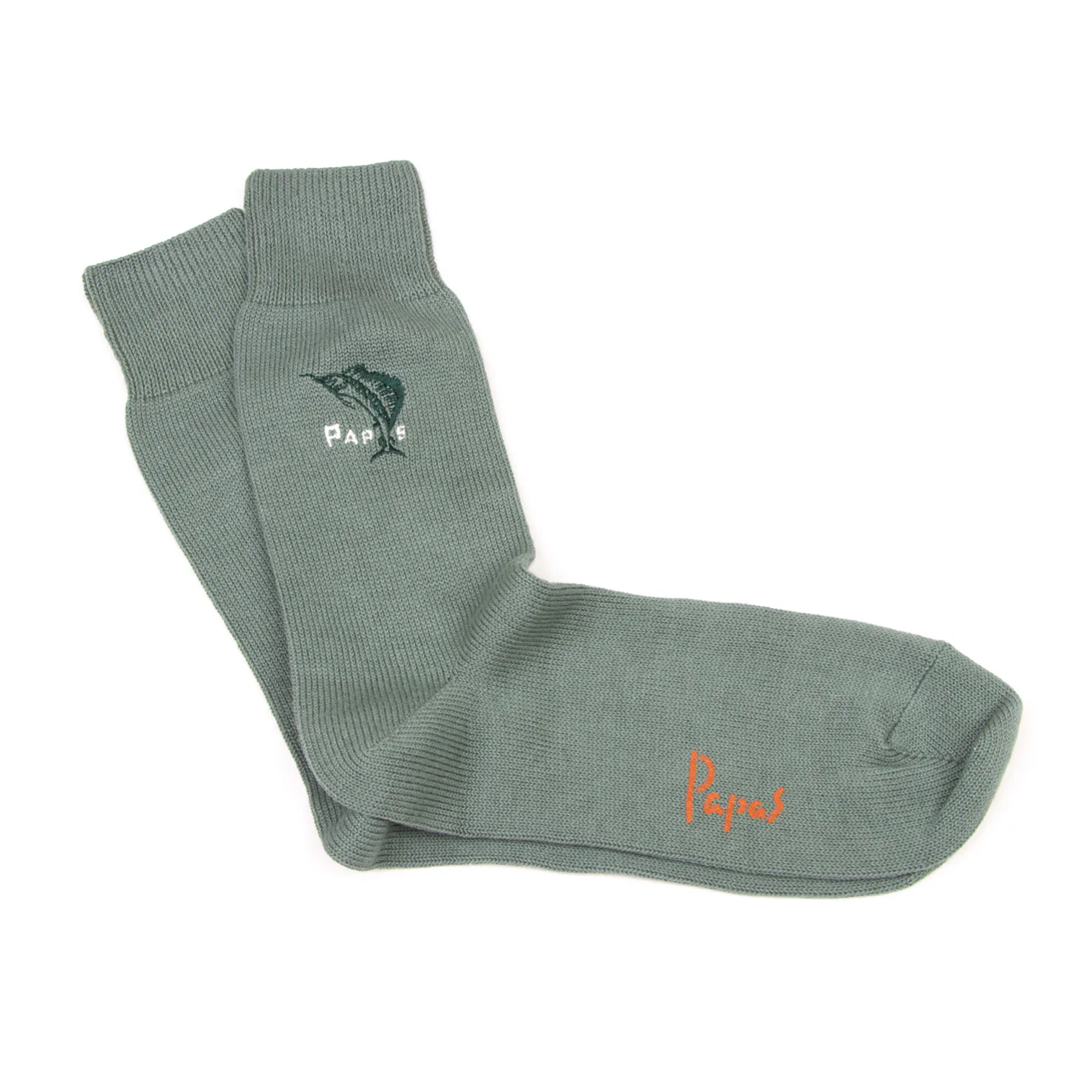 新品!パパスPapas カジキロゴ刺繍ハイソックス 緑M位(25cm~27cm)