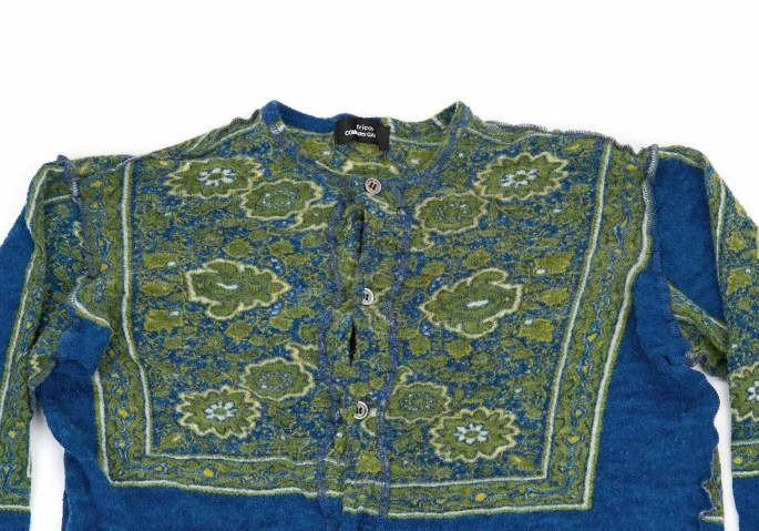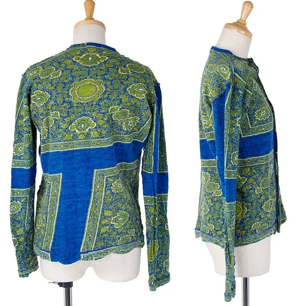 トリココムデギャルソンtricot COMME des GARCONS 花柄縮絨カーディガン 青/モスグリーンM位