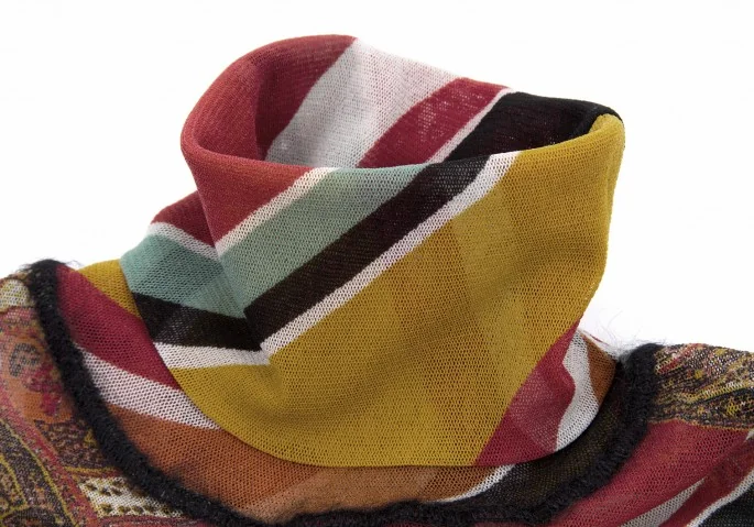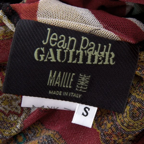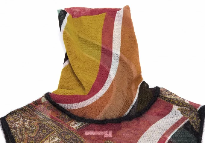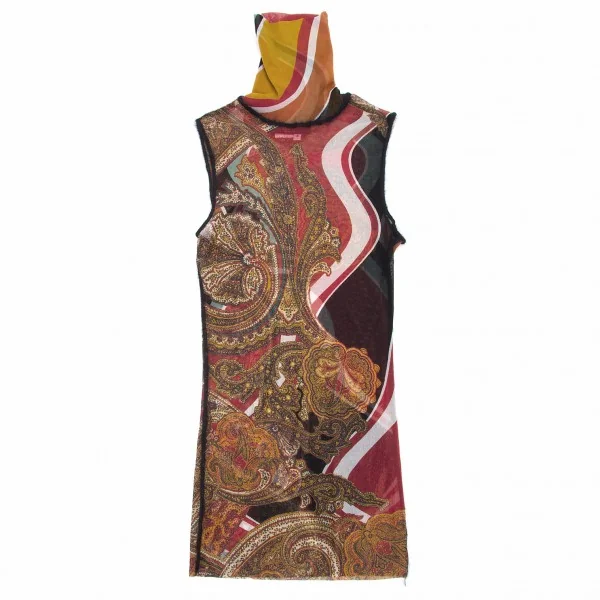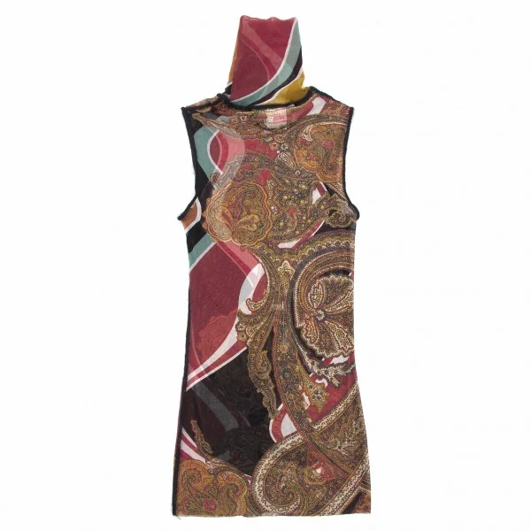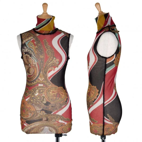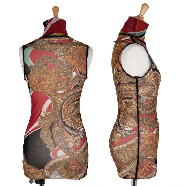 ジャンポールゴルチエファム マイユJean Paul GAULTIER FEMME MAILLE パワーネットアラベスク柄タートルネックノースリーブ エンジS