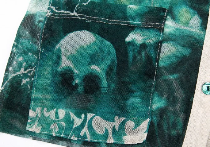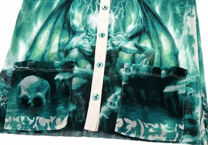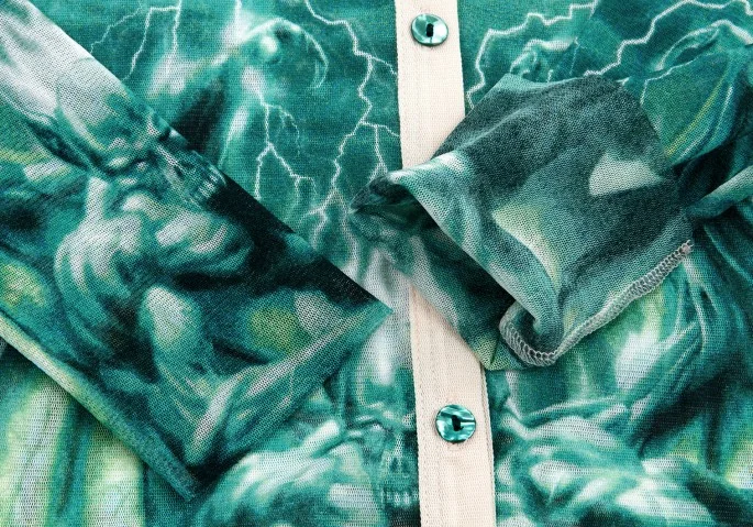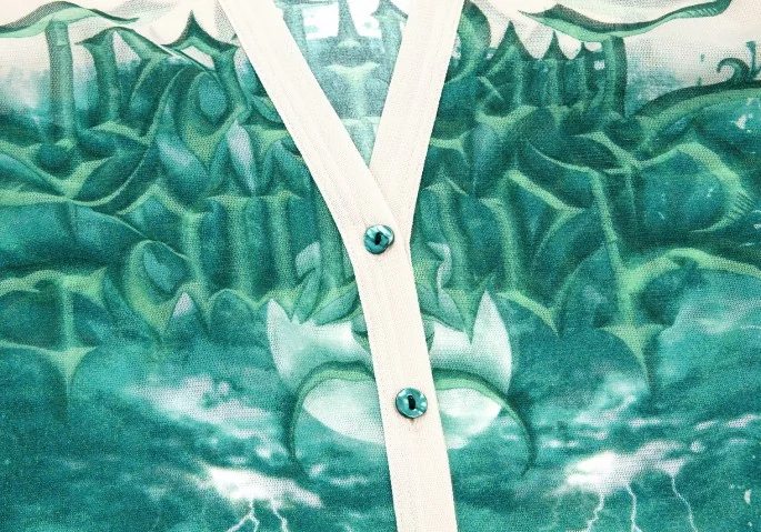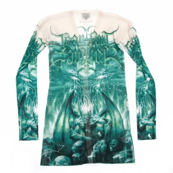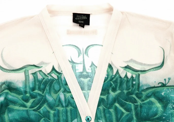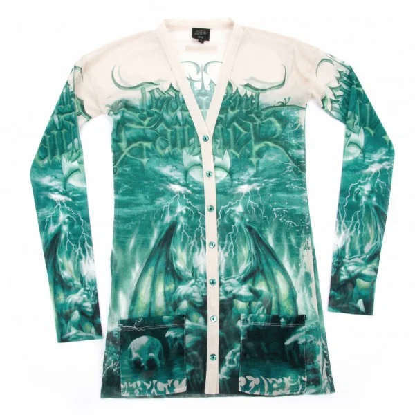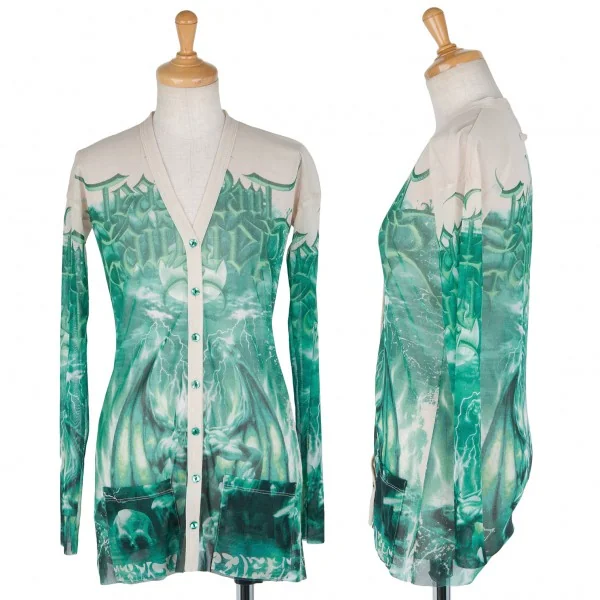 ジャンポールゴルチエファムJean Paul GAULTIER FEMME パワーネットガーゴイル柄カーディガン クリーム/グリーン40