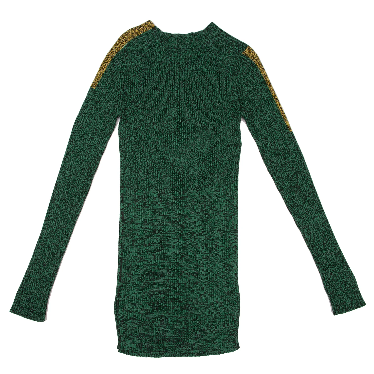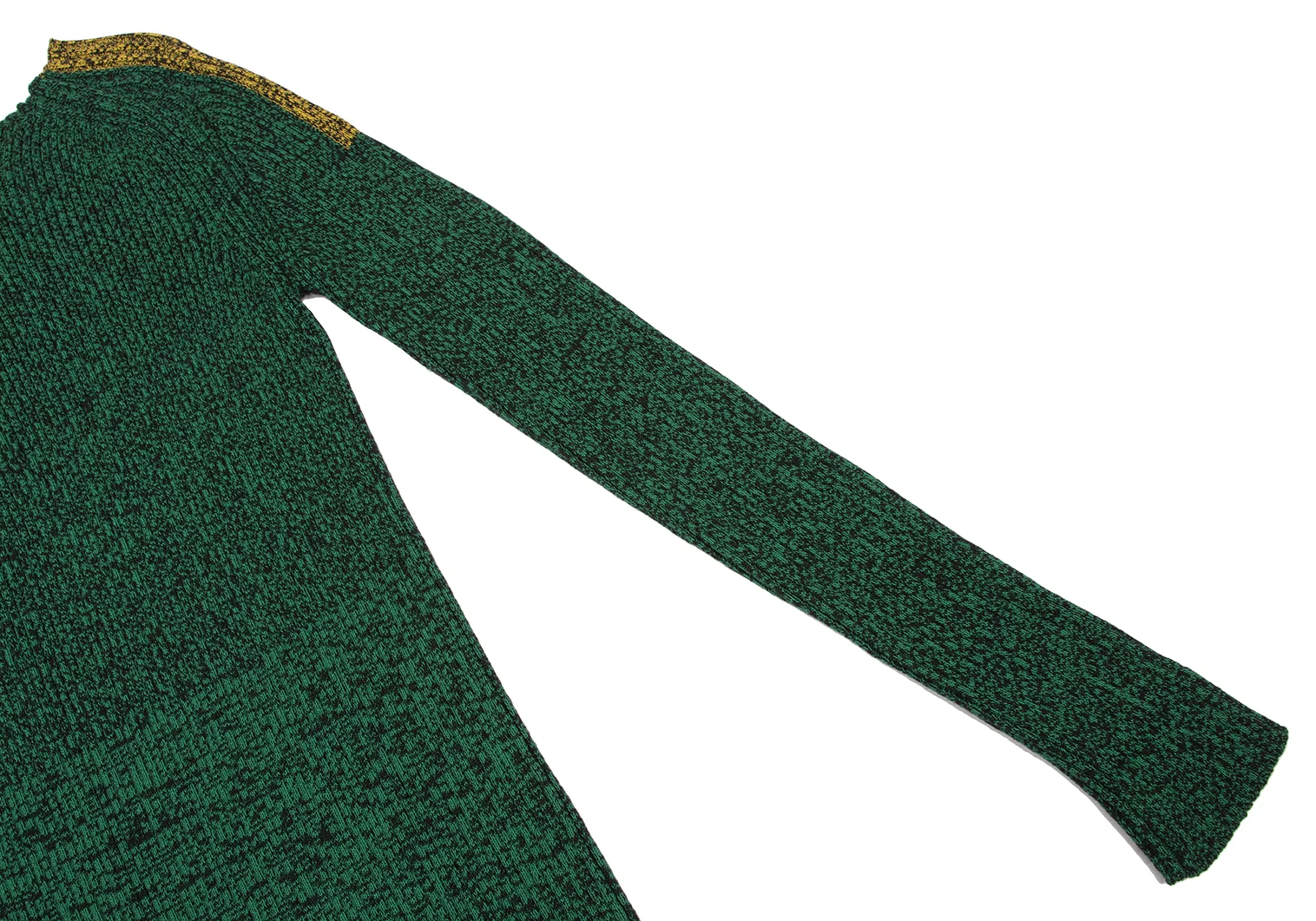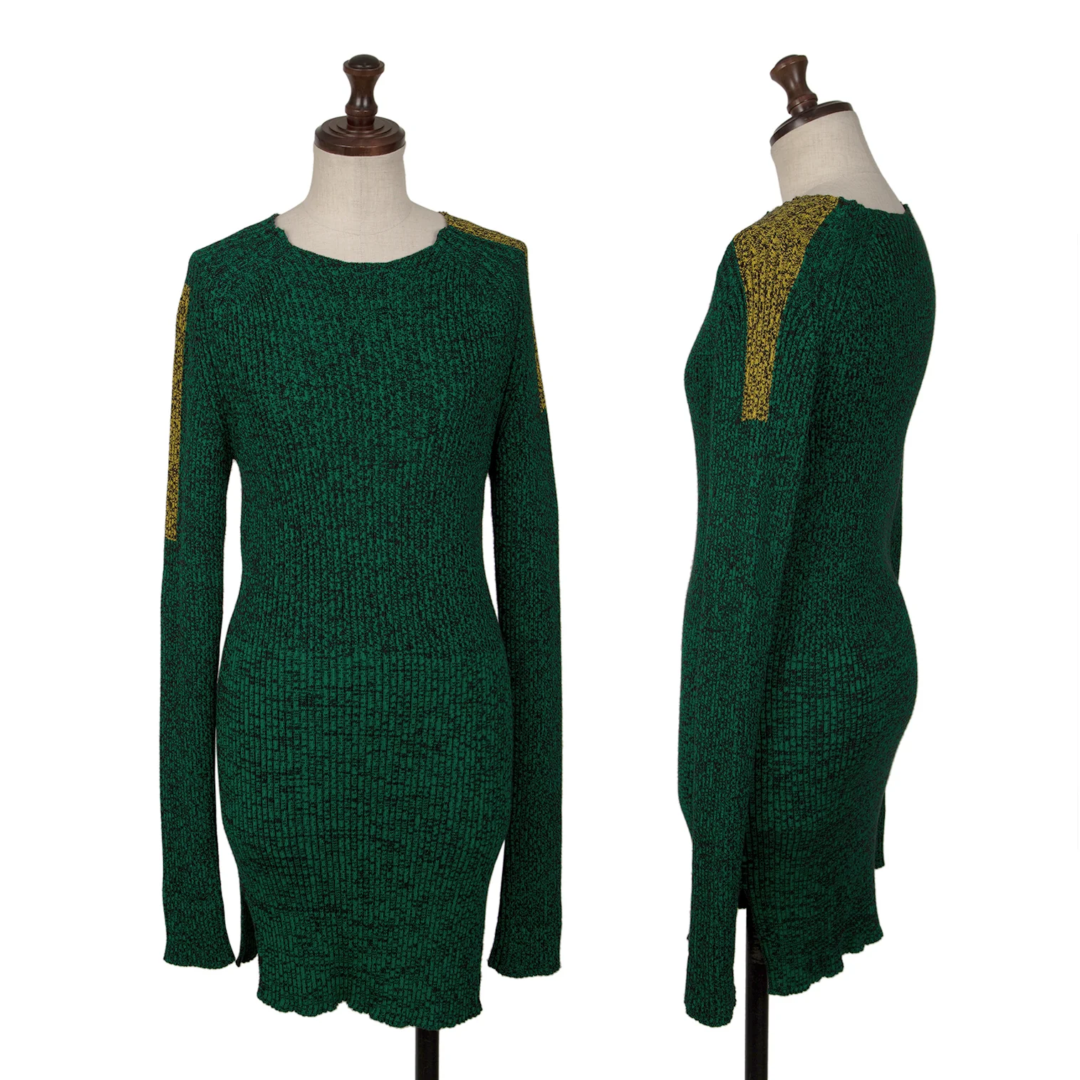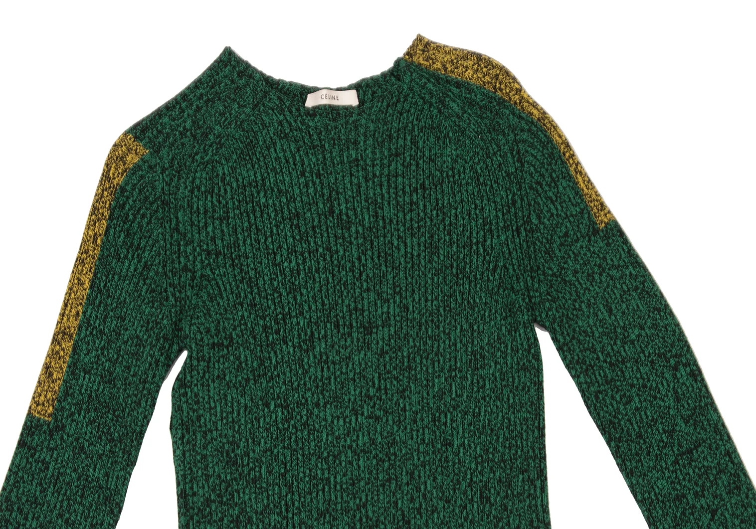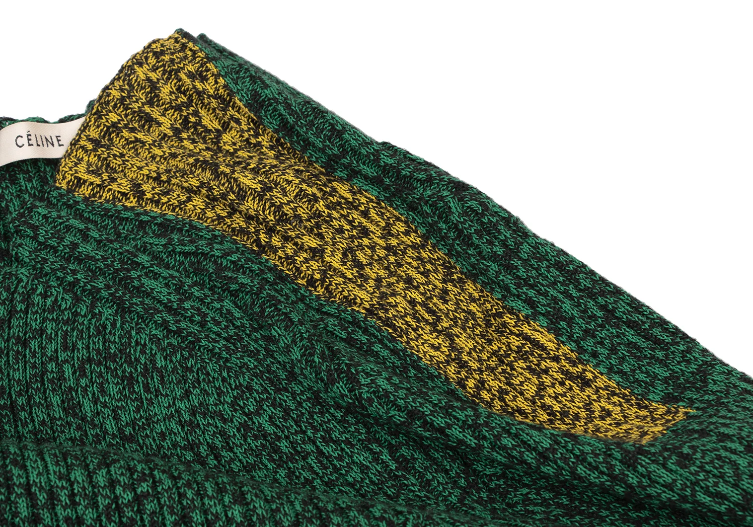 セリーヌCELINE コットンレーヨンバイカラーニット 緑M