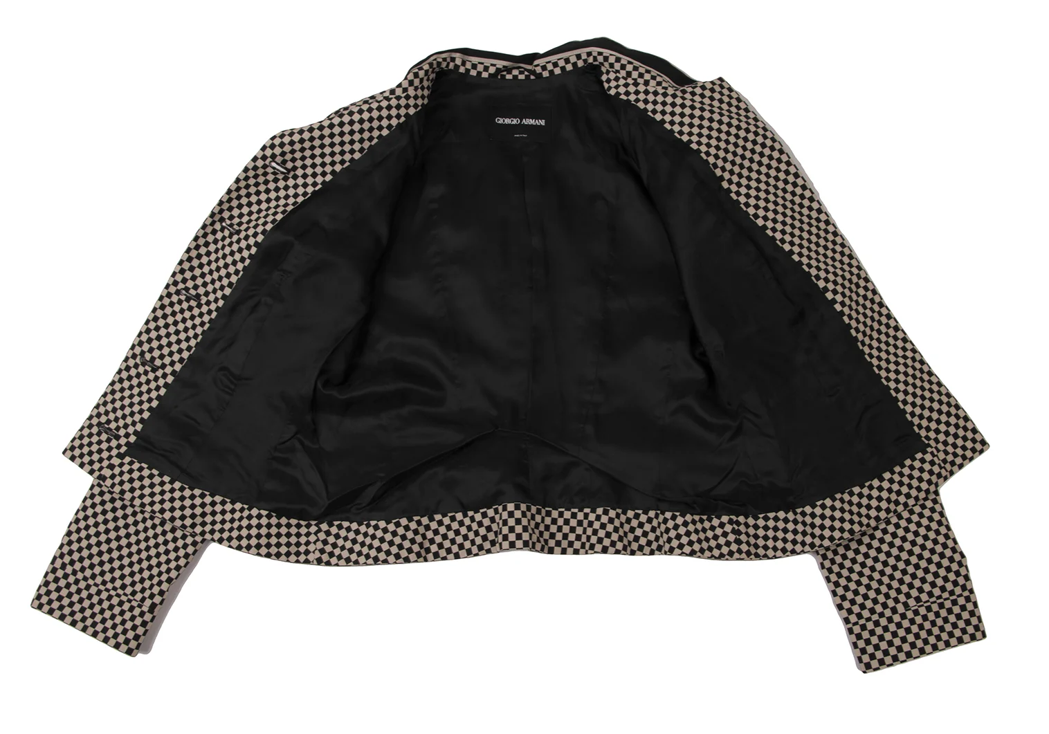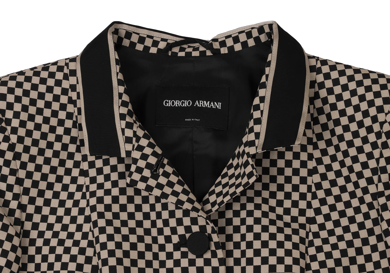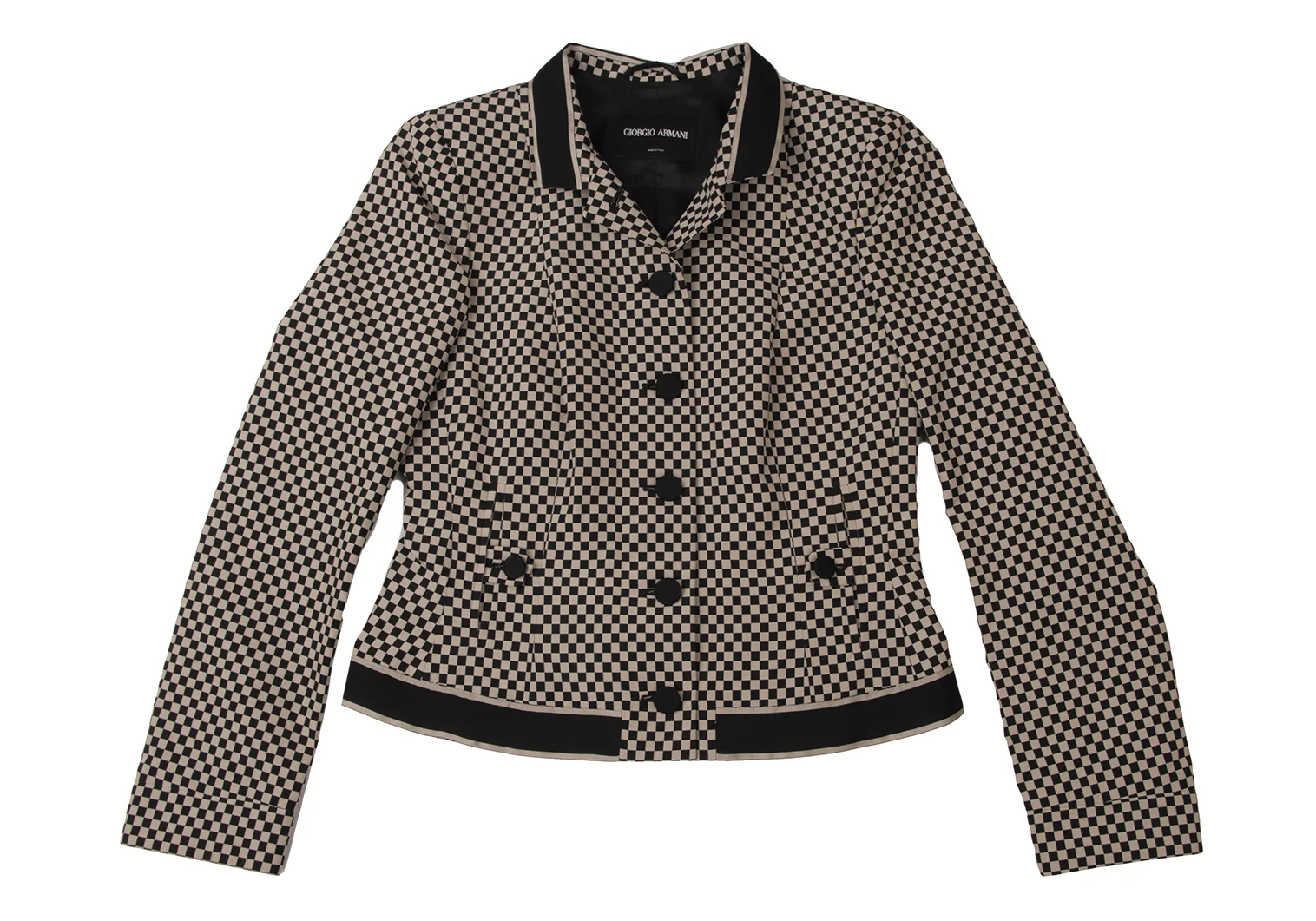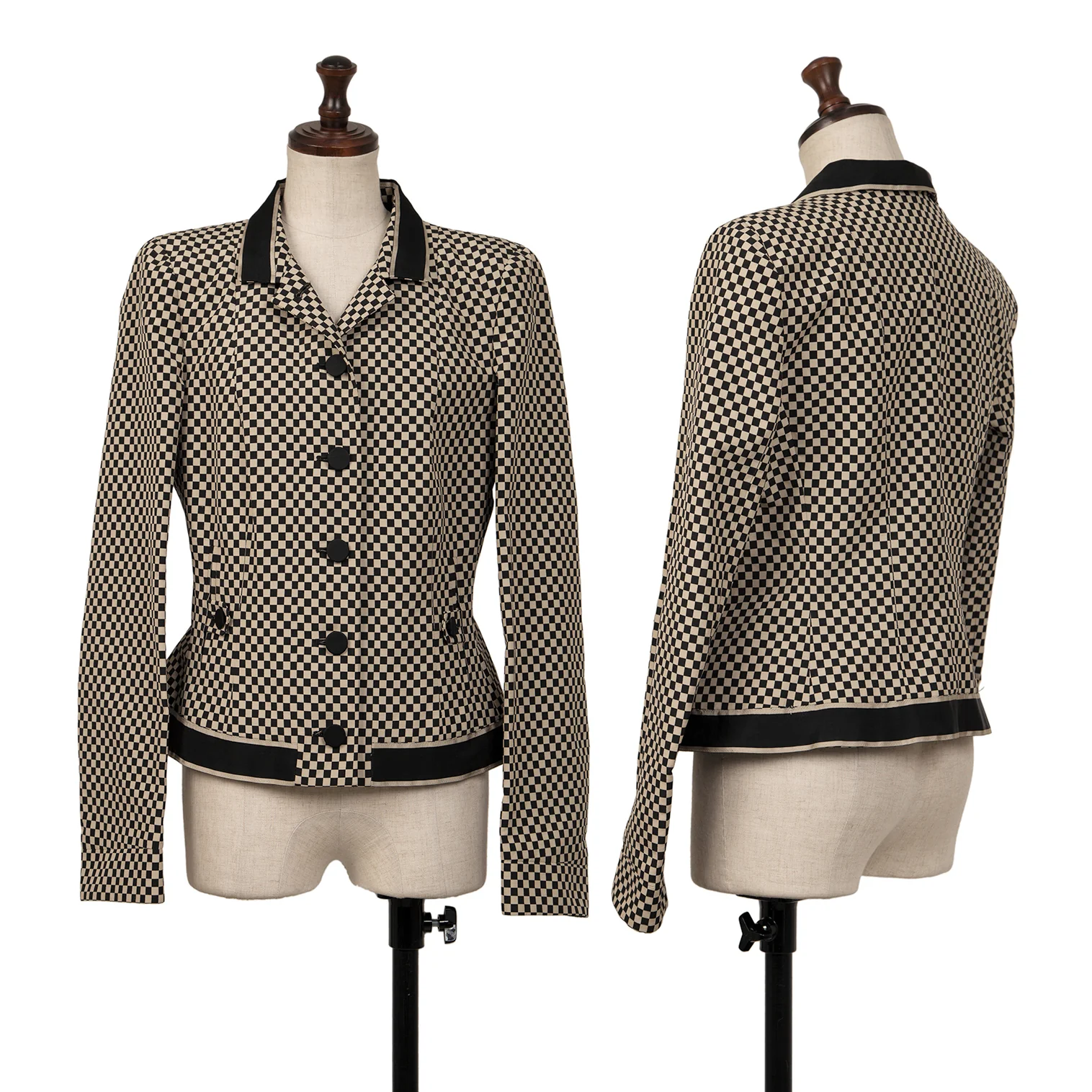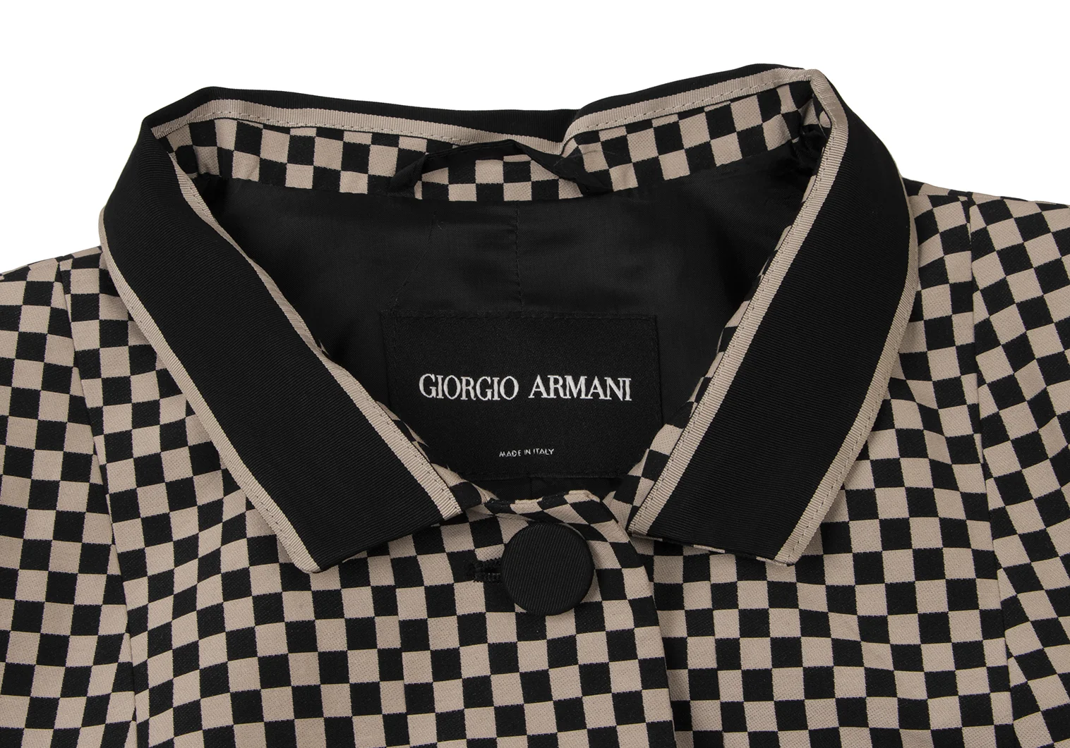 ジョルジオ アルマーニGIORGIO ARMANI コットンポリチェッカーフラッグジャケット ベージュ黒40