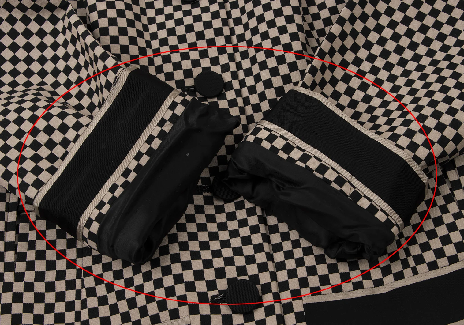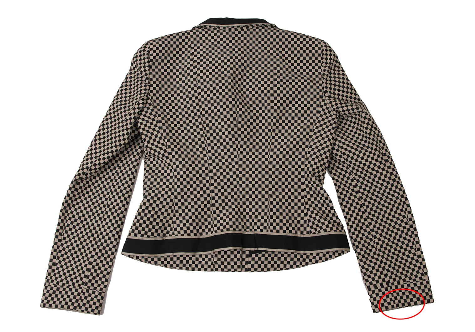 肩パッドあり。襟裏・袖裏に汚れ、袖先にシミがあります(写真参照)。その他目立ったシミ、汚れ、ほつれ等なくいい状態です。クリーニング済み