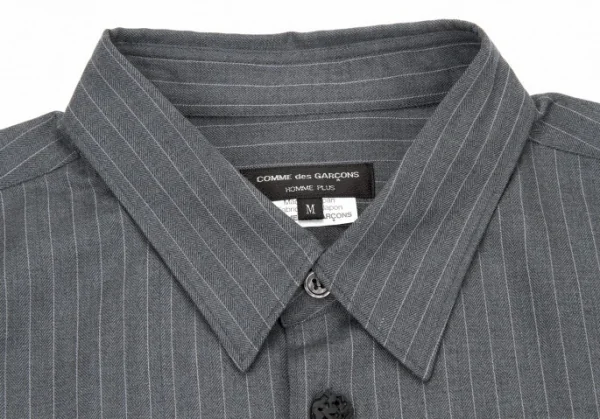 新品!【SALE】新品!コムデギャルソン オムプリュスCOMME des GARCONS HOMME PLUS パープルストライプ長袖ウールシャツ グレーM