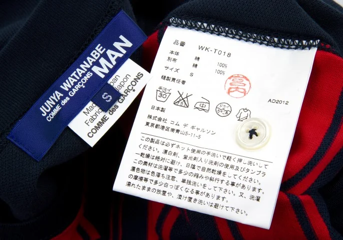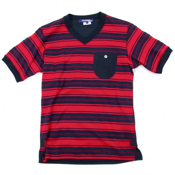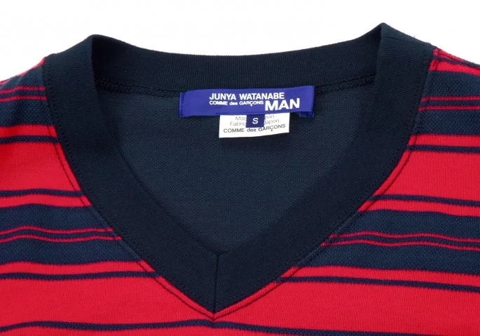 新品!ジュンヤワタナベマン コムデギャルソンJUNYA WATANABE MAN COMME des GARCONS 切替ボーダーVネック鹿の子カットソー 赤紺S