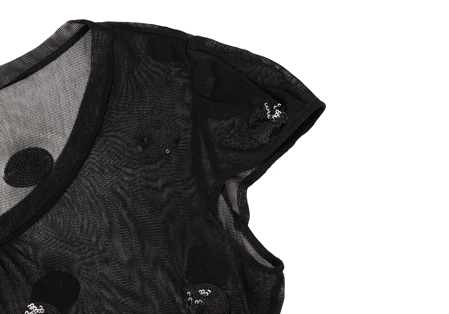 バジーレBASILE 28 スパンコールドットメッシュTシャツ 黒M位