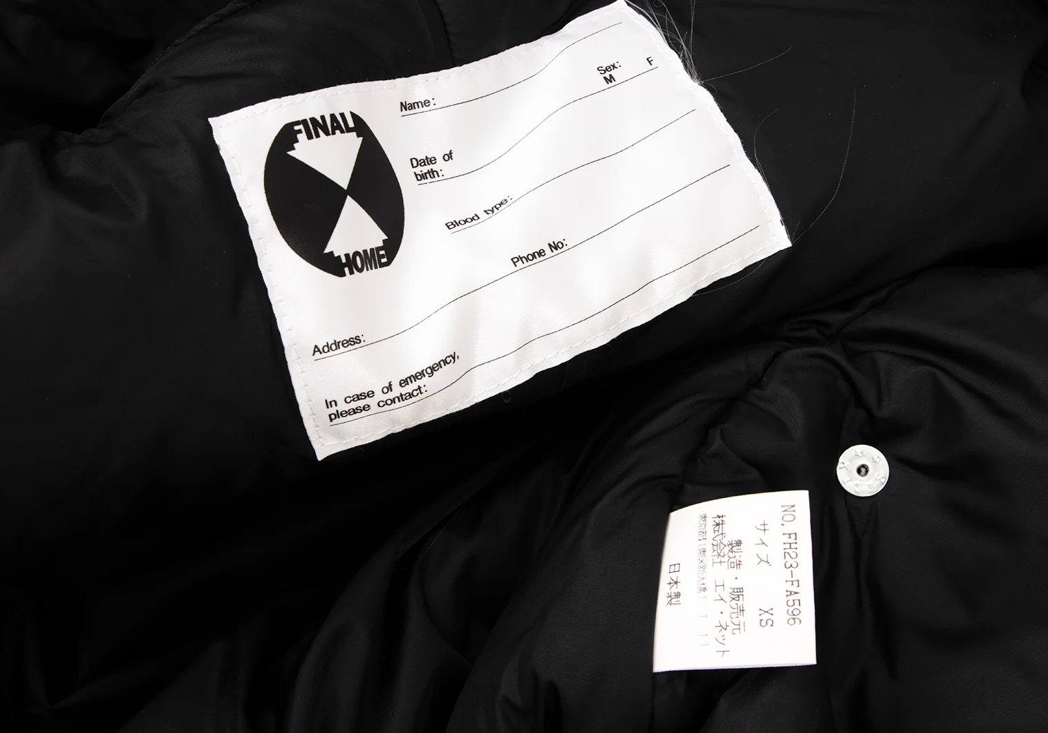 ファイナルホームFINAL HOME ナイロン中綿バックレイヤードフーテッドジャケット 黒XS