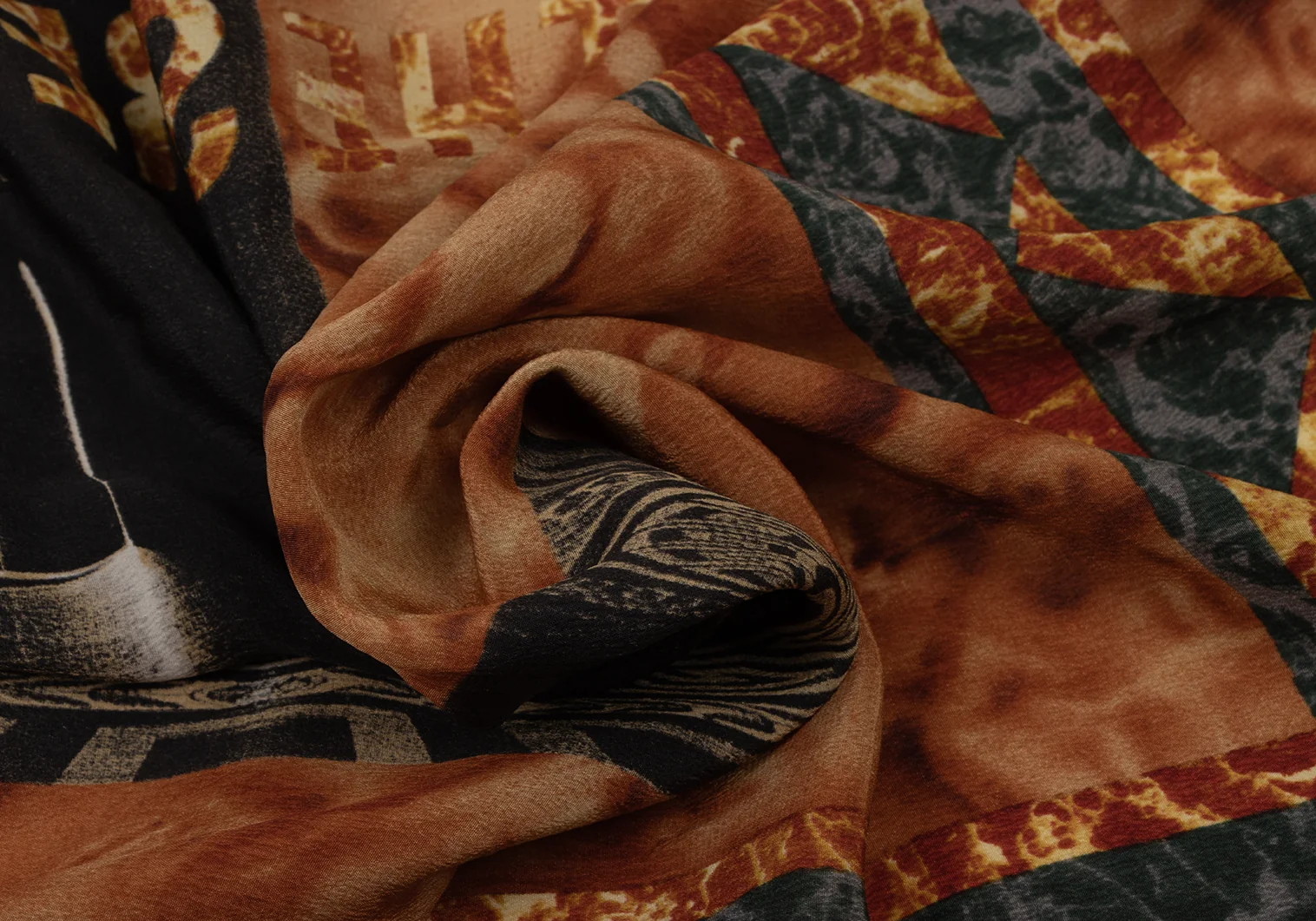 ジャンポールゴルチエJean Paul GAULTIER THE SECRET LIFE OF J.P. プリントスカーフ 茶黒マルチ