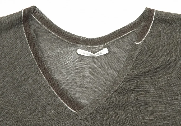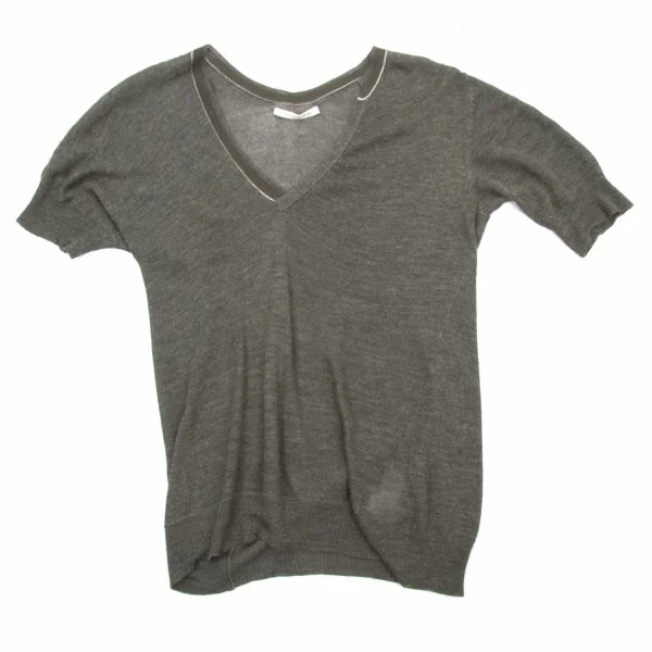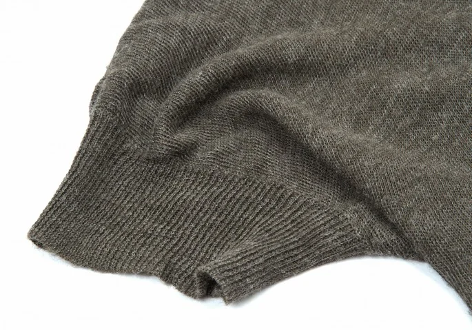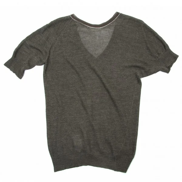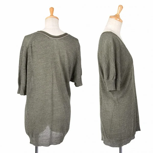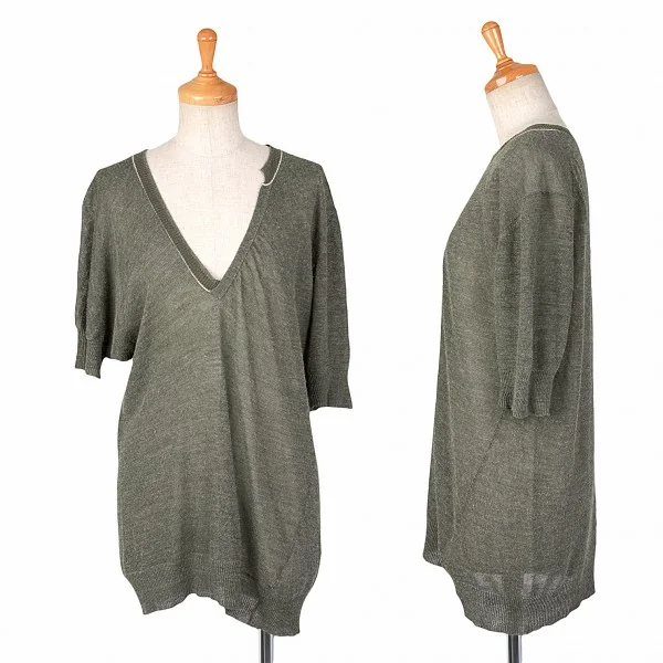 ワイズY's 変形Vネックレーヨンリネン半袖ニット カーキ3