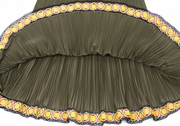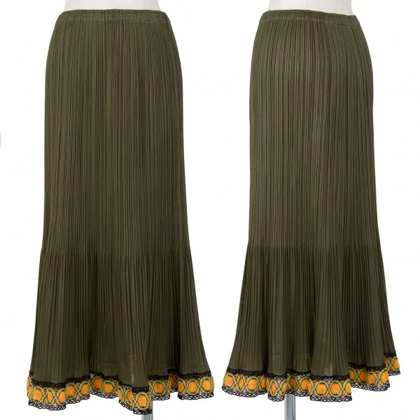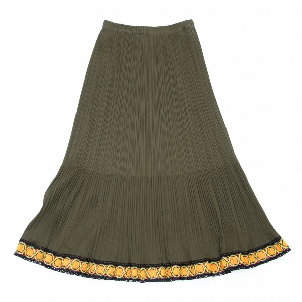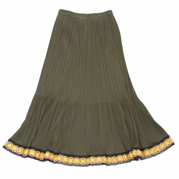 プリーツプリーズPLEATS PLEASE 裾レースフレアースカート カーキ3