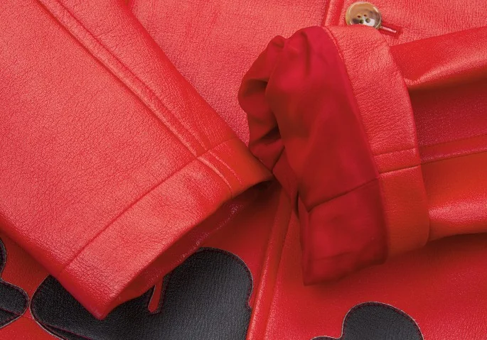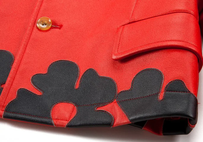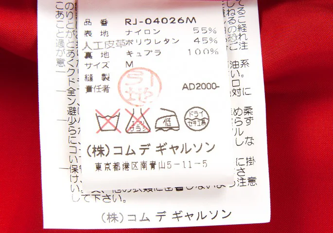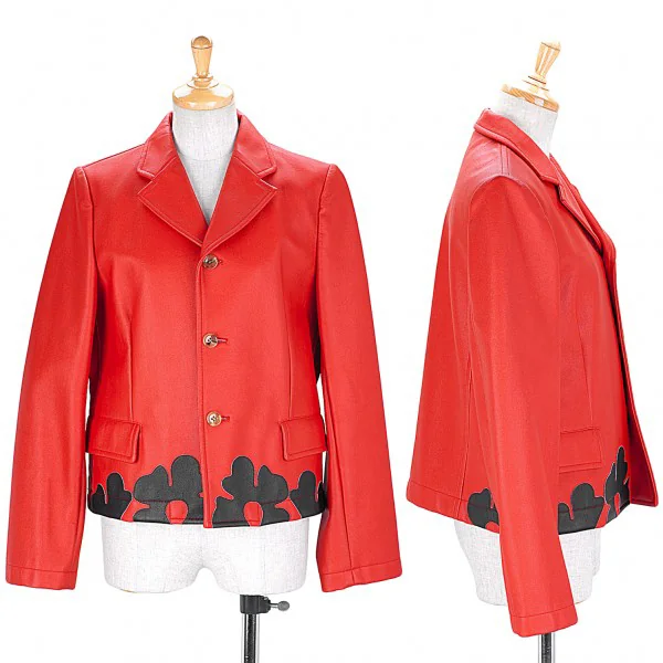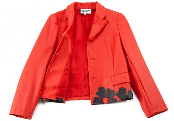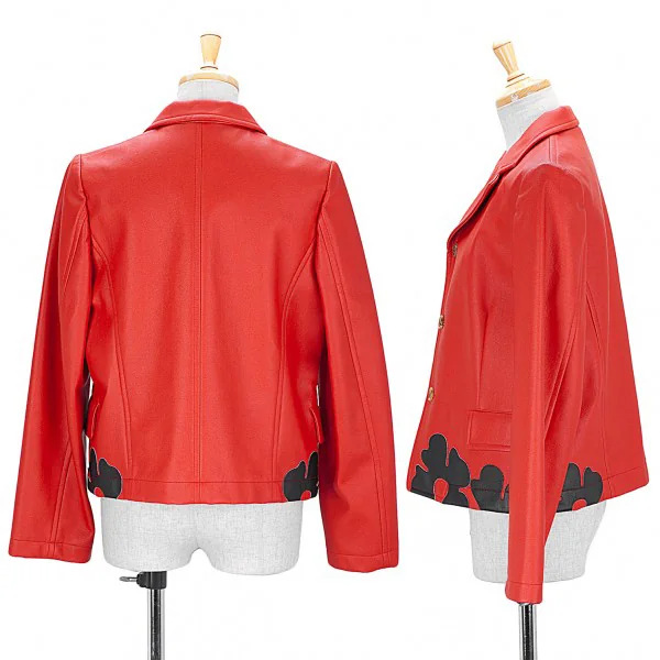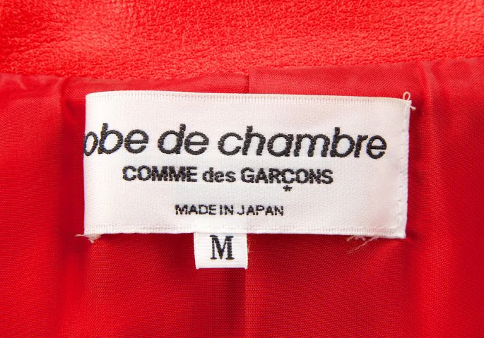 ローブドシャンブル コムデギャルソンrobe de chambre COMME des GARCONSフェイクレザー裾モチーフジャケット 朱赤M