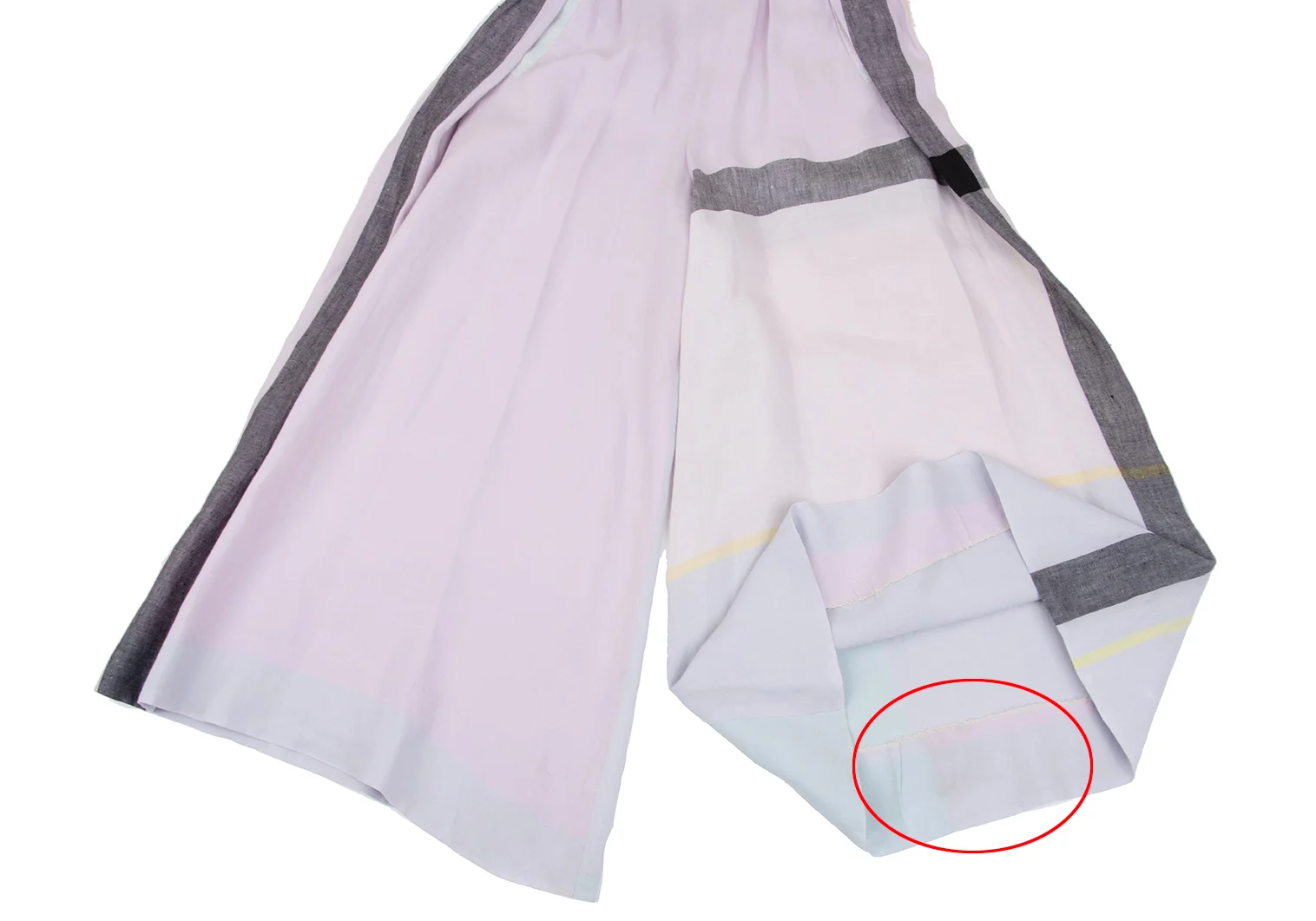 透け感があります。裾裏・股裏にシミがあります(写真参照)。クリーニング済み。