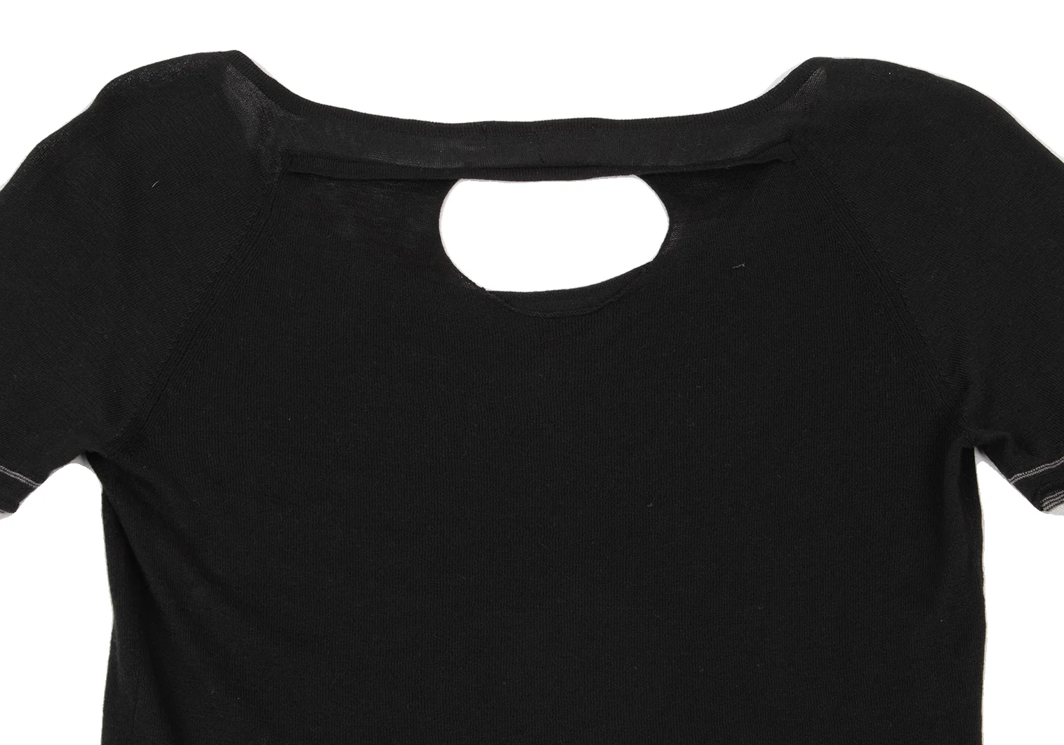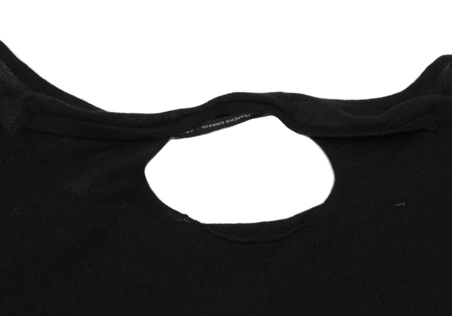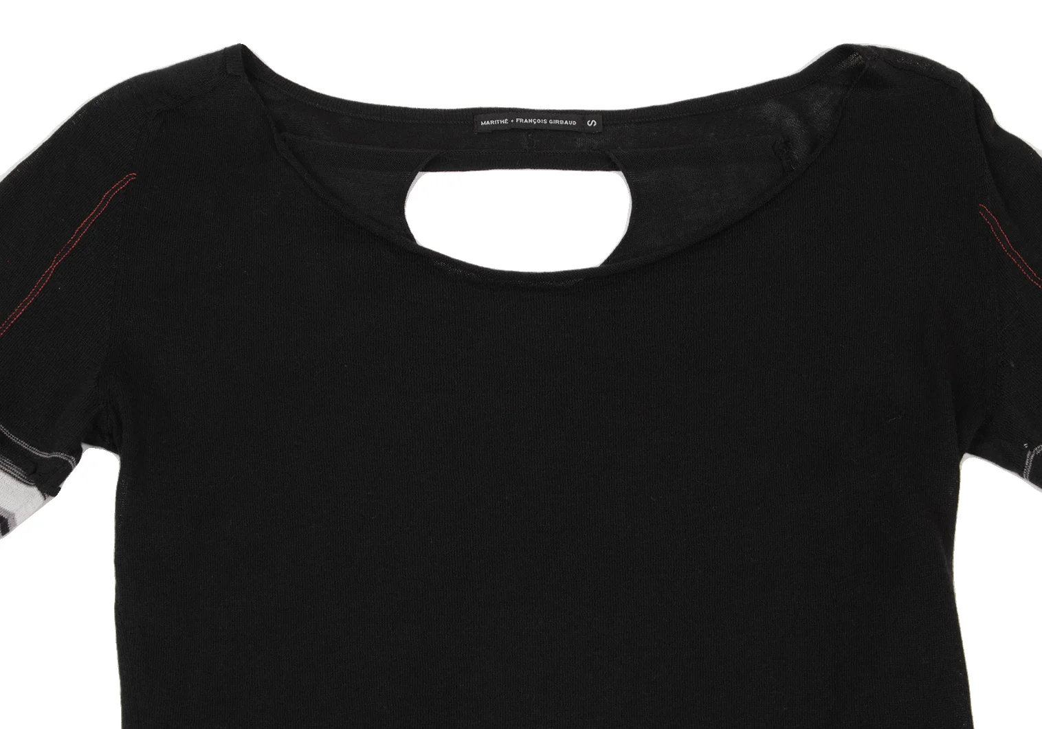 マリテフランソワジルボーMARITHE + FRANCOIS GIRBAUD コットンアクリル袖切替バックホールデザインカットソー 黒他S