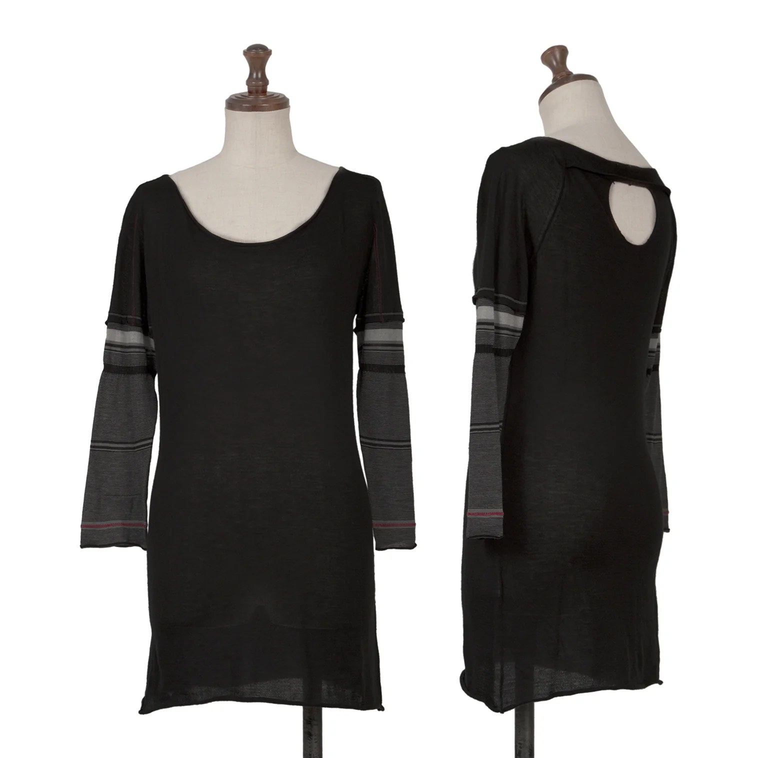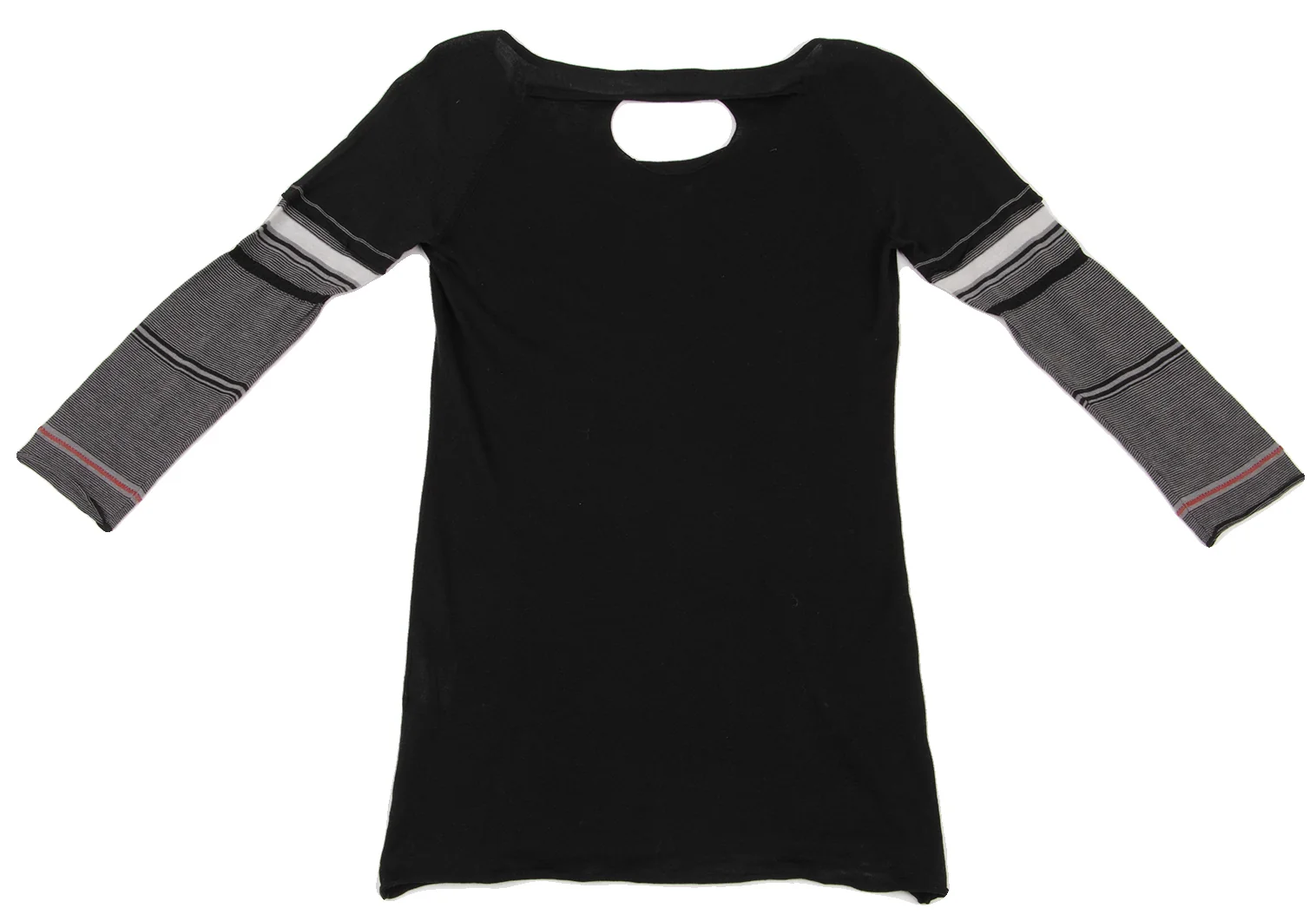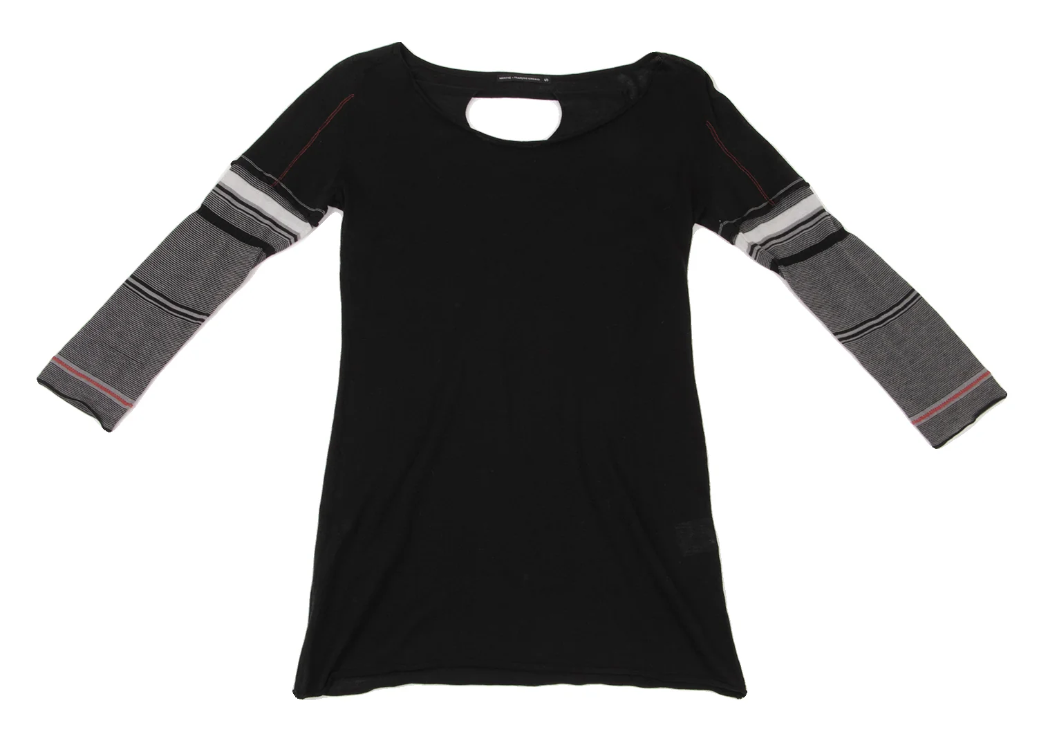マリテフランソワジルボーMARITHE + FRANCOIS GIRBAUD コットンアクリル袖切替バックホールデザインカットソー 黒他S