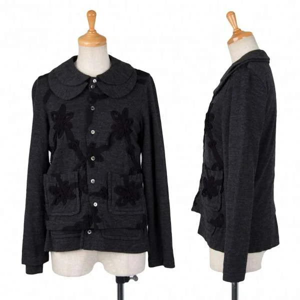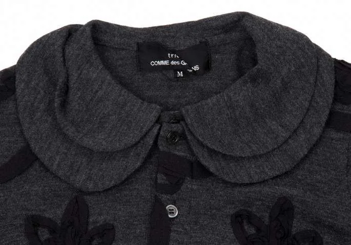 トリコ コムデギャルソンtricot COMME des GARCONSリボンテープレイヤードカーディガン チャコールM