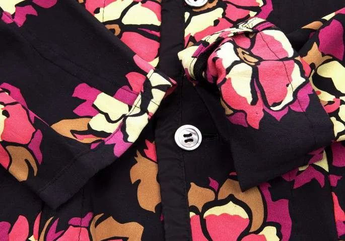 【SALE】ローブドシャンブル コムデギャルソンrobe de chambre COMME des GARCONS 花柄シルクシャツジャケット 黒M位