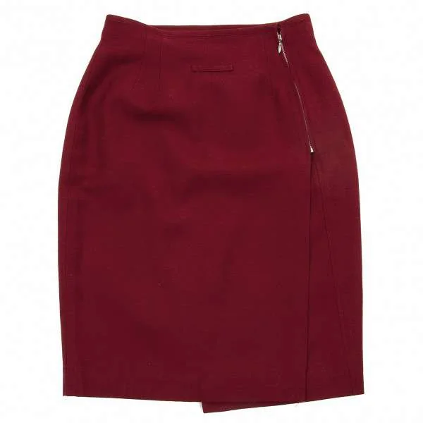 【SALE】ジャンポールゴルチエ ファムJean Paul GAULTIER FEMME ウールシルク巻きジップスカート エンジ40