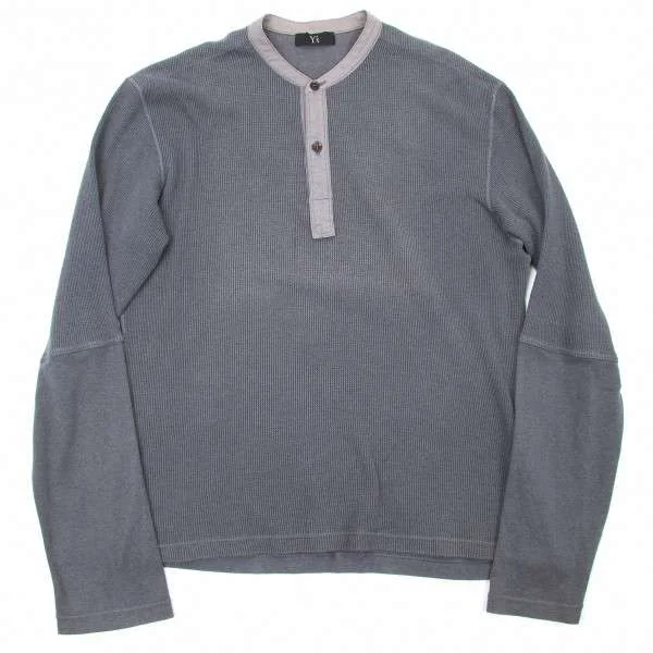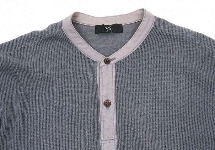 ワイズフォーメンY’s for men 製品染め鹿の子切替ヘンリーネックカットソー グレー2