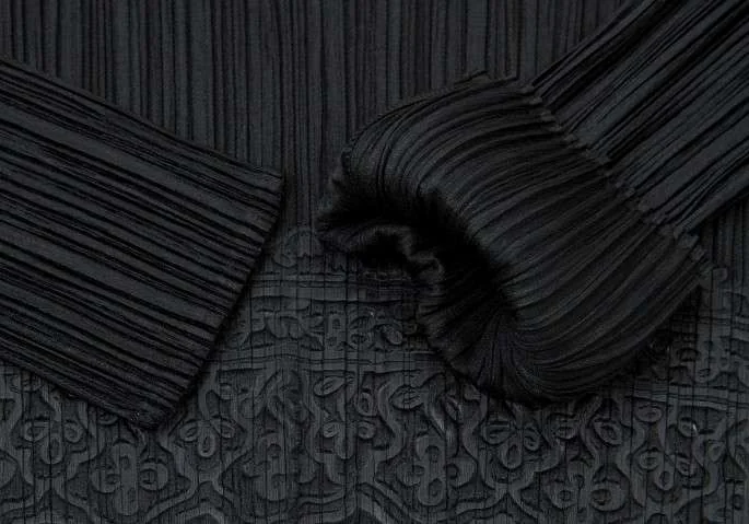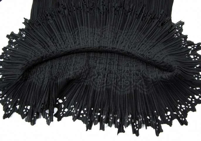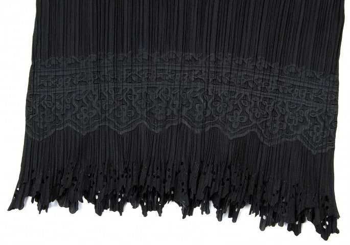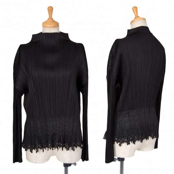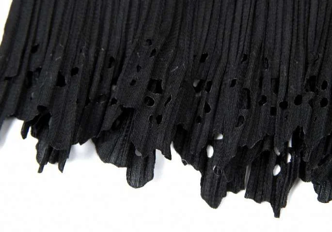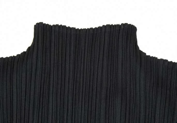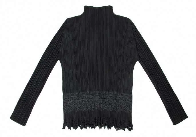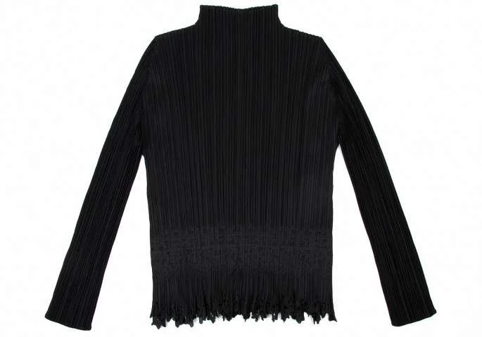 プリーツプリーズPLEATS PLEASE ハイネック型押し裾カット長袖カットソー 黒3
