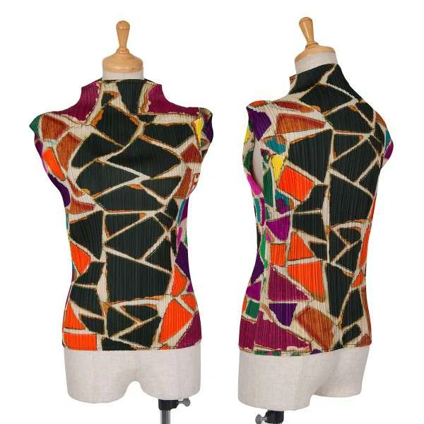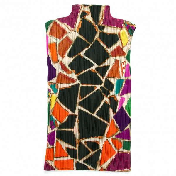 プリーツプリーズPLEATS PLEASE タイル柄ハイネックノースリーブ カーキベージュ他3