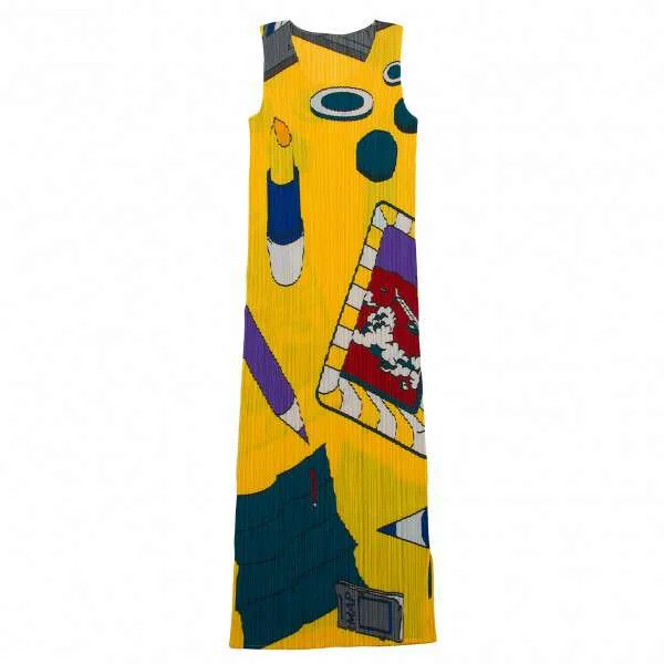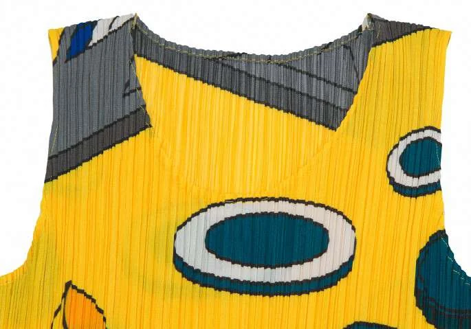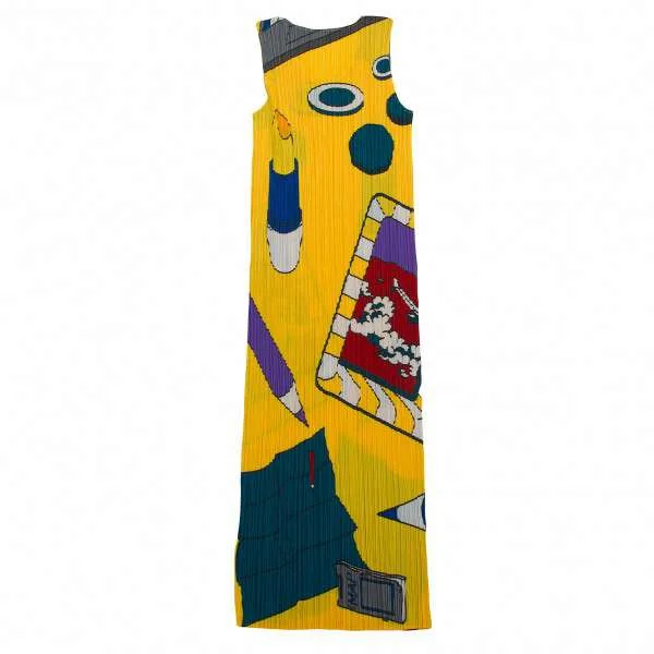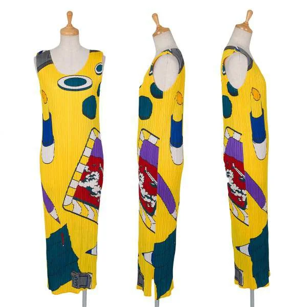 プリーツプリーズPLEATS PLEASE ルージュetc...柄ワンピース 黄4
