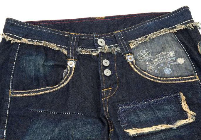 マリテフランソワジルボーMARITHE + FRANCOIS GIRBAUD パッチクロップドジーンズ 紺S