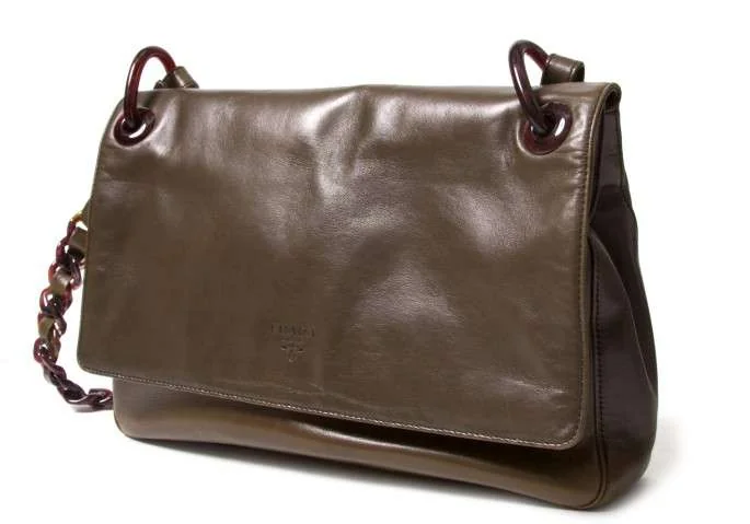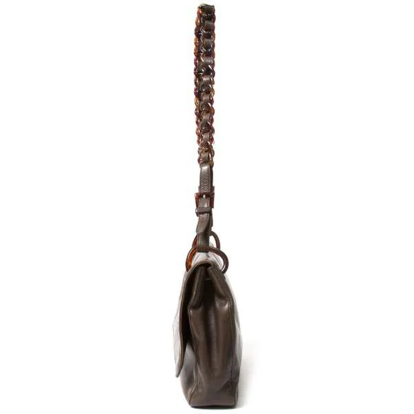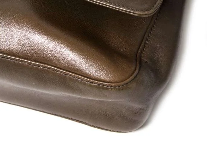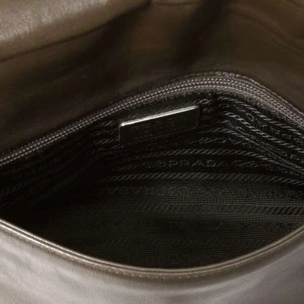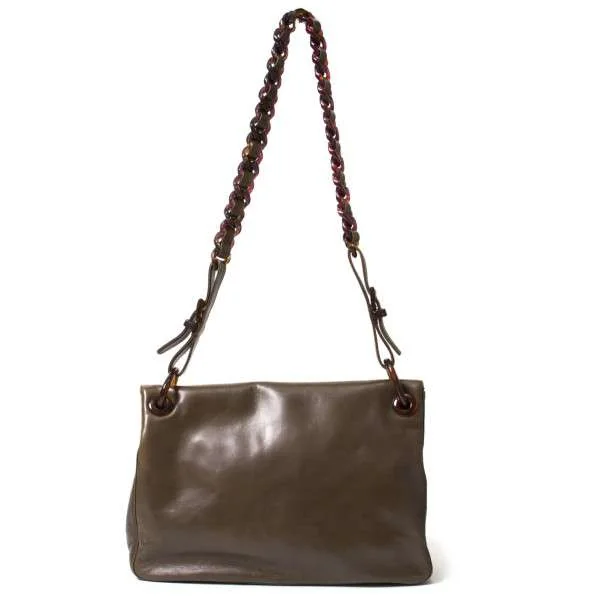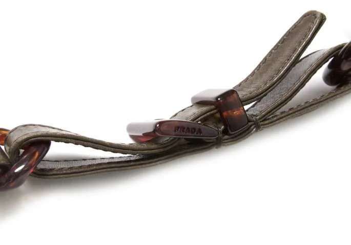 プラダPRADA チェーンショルダーレザーバッグ 茶