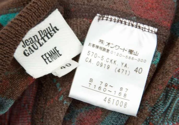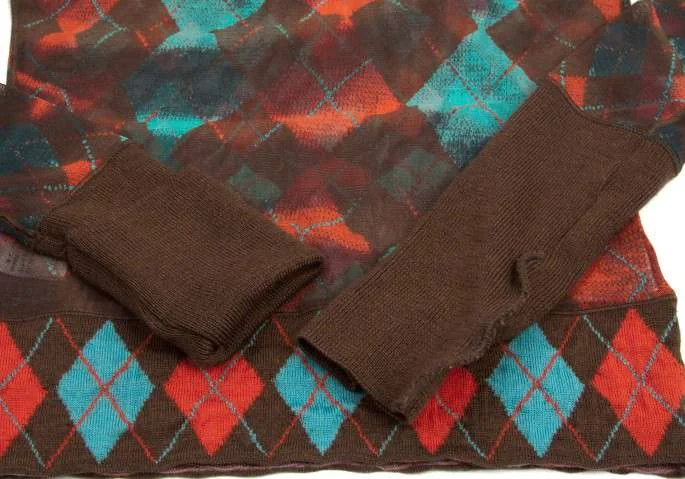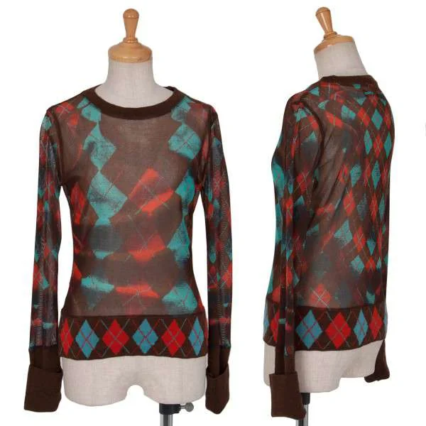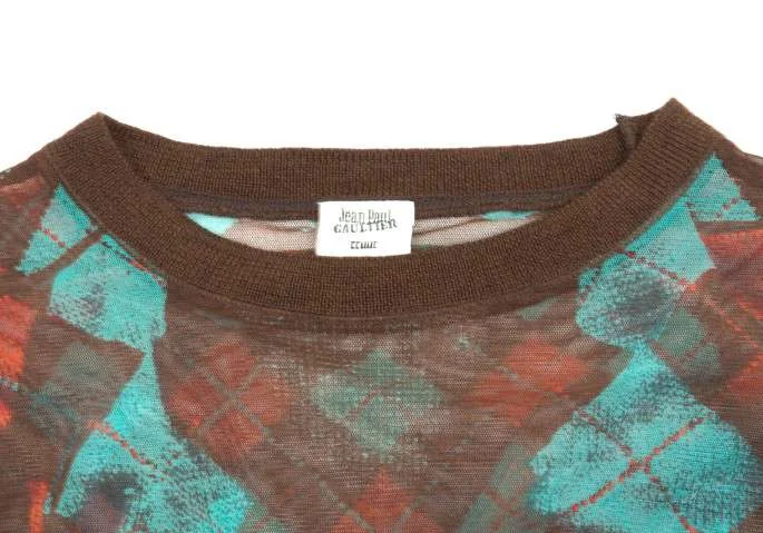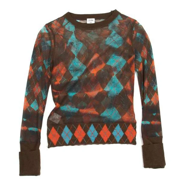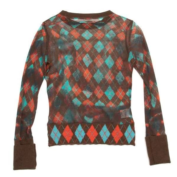 【SALE】ジャンポールゴルチエ ファムJean Paul GAULTIER FEMME リブ切替アーガイルパワーネット長袖カットソー 茶40