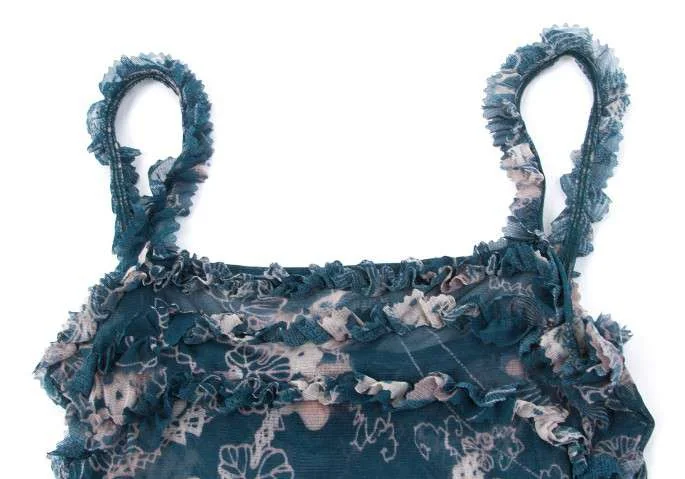 ジャンポールゴルチエ Jean Paul GAULTIER フリル装飾パワーネットキャミソール 紺40