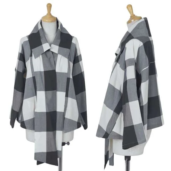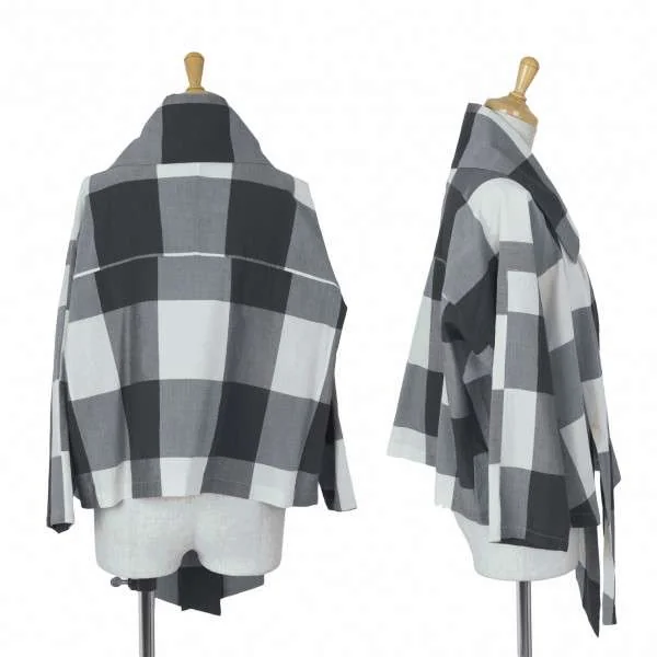 イッセイミヤケハート ISSEY MIYAKE HaaT ブロック柄デザインジャケット 白黒グレー2
