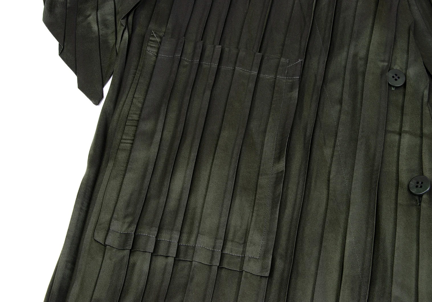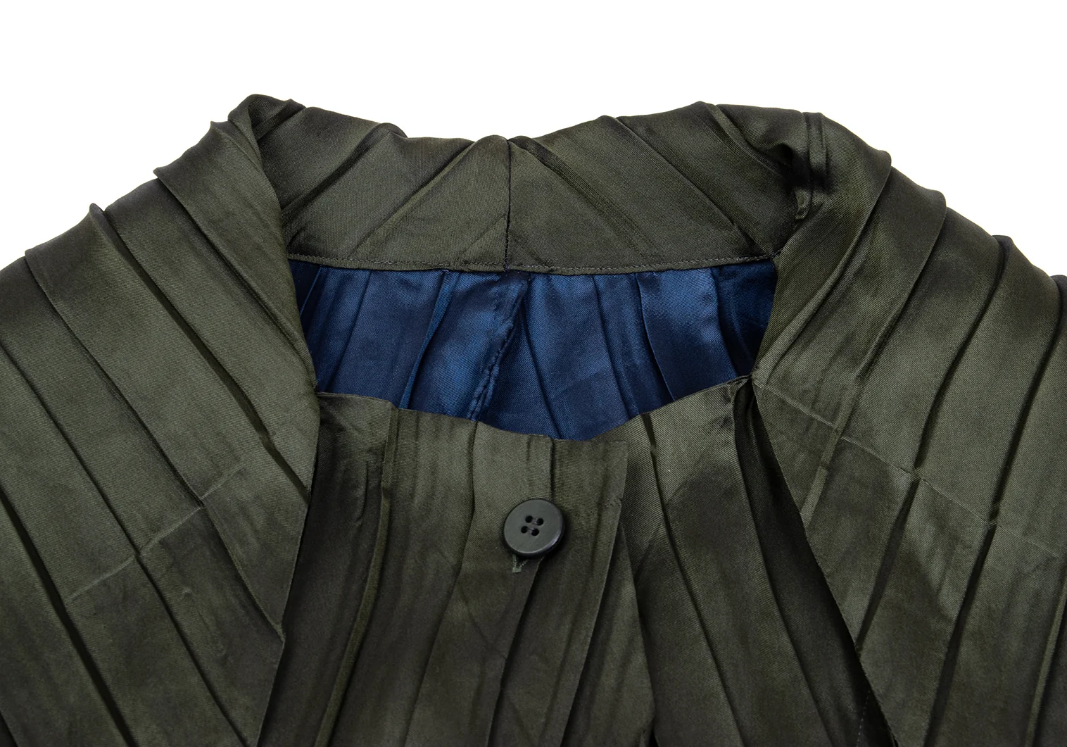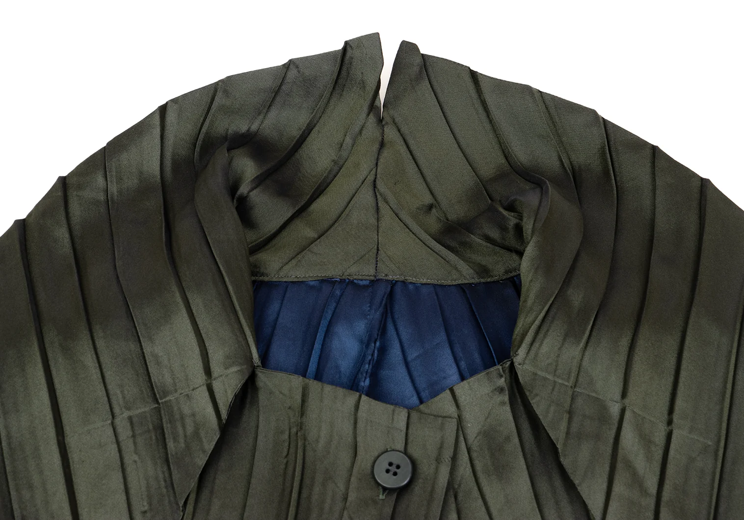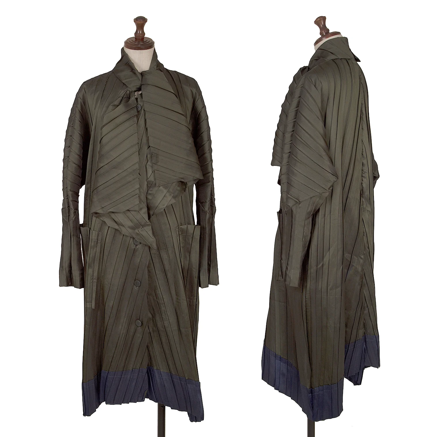 イッセイミヤケISSEY MIYAKE ストールカラーバイカラープリーツコート カーキM位