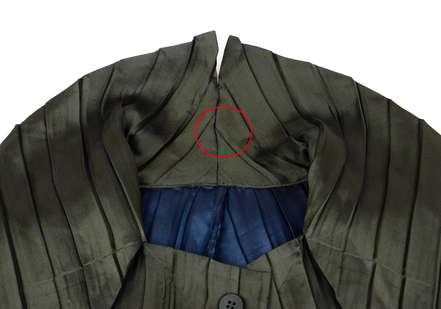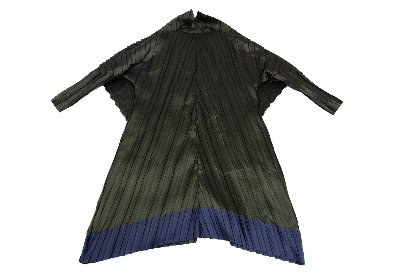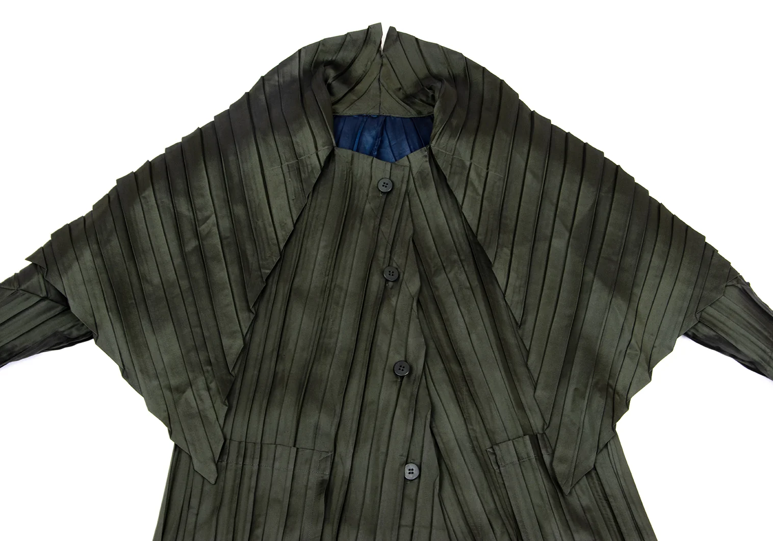 イッセイミヤケISSEY MIYAKE ストールカラーバイカラープリーツコート カーキM位