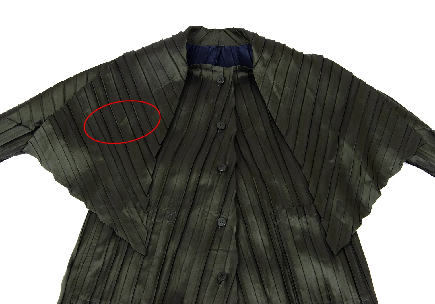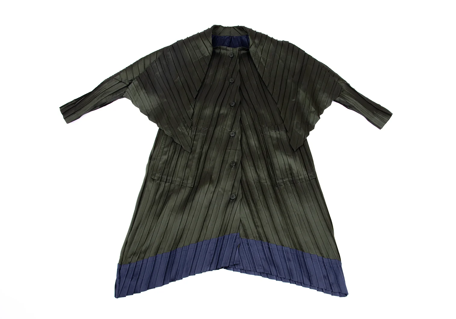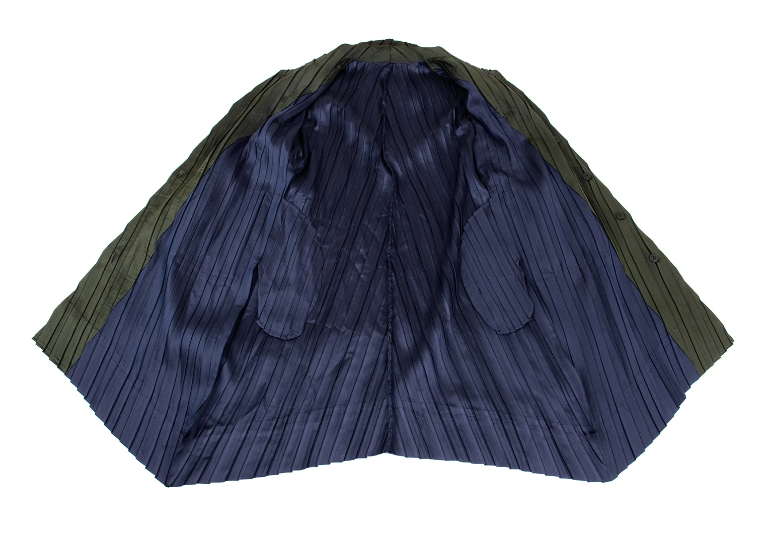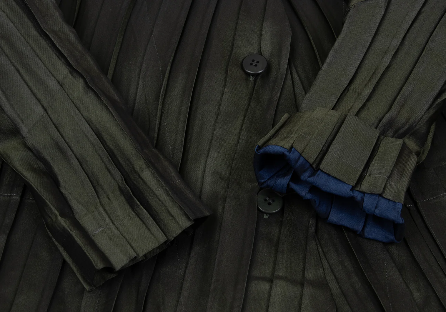 イッセイミヤケISSEY MIYAKE ストールカラーバイカラープリーツコート カーキM位
