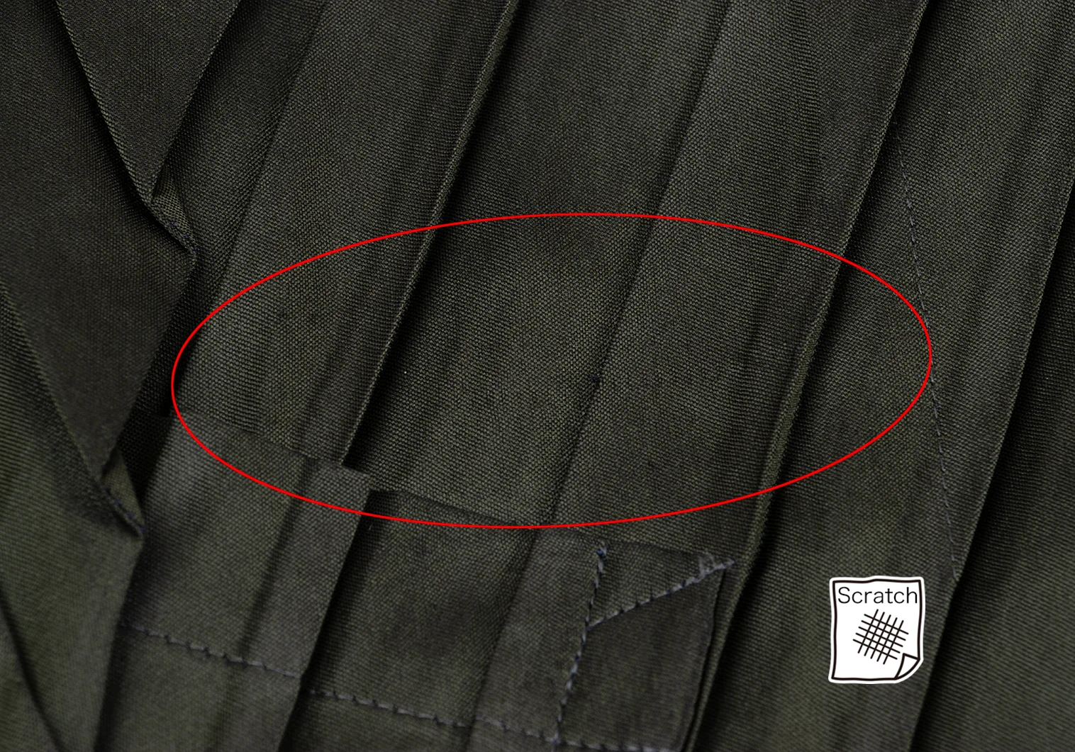 2017A/W ラペル・襟裏・前身頃に引っ掛けがあります(写真参照)。その他目立ったシミ、汚れ、ほつれ等なくいい状態です。クリーニング済み。