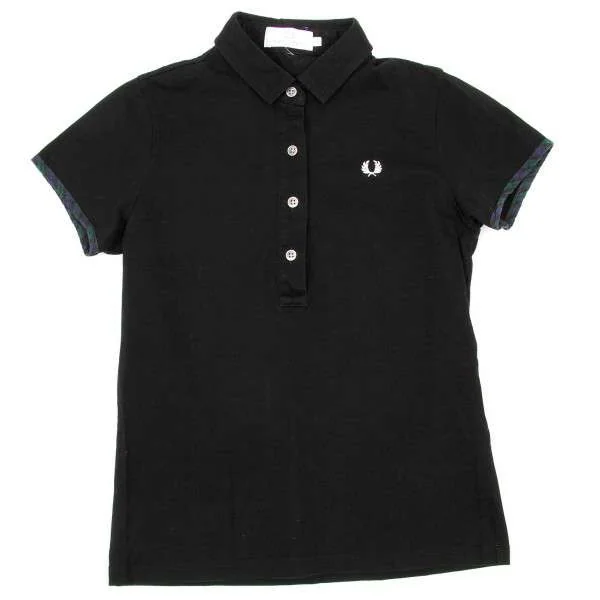 フレッドペリーFREDPERRY チェックパイピングポロシャツ 黒L
